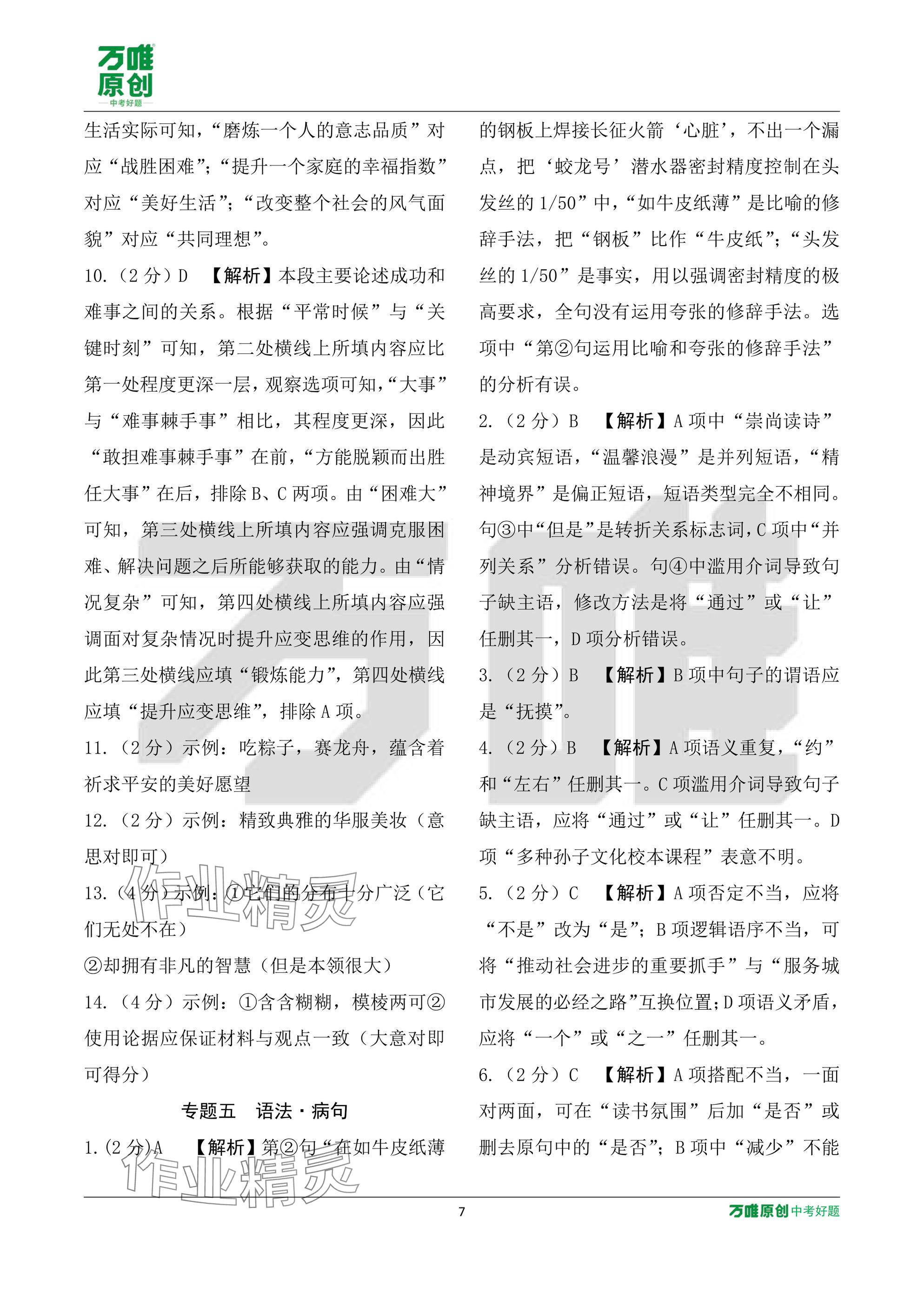 注:目前有些书本章节名称可能整理的还不是很完善,但都是按照顺序排列的,请同学们按照顺序仔细查找。练习册 2025年万唯中考试题研究语文山东专版 答案主要是用来给同学们做完题方便对答案用的,请勿直接抄袭。
