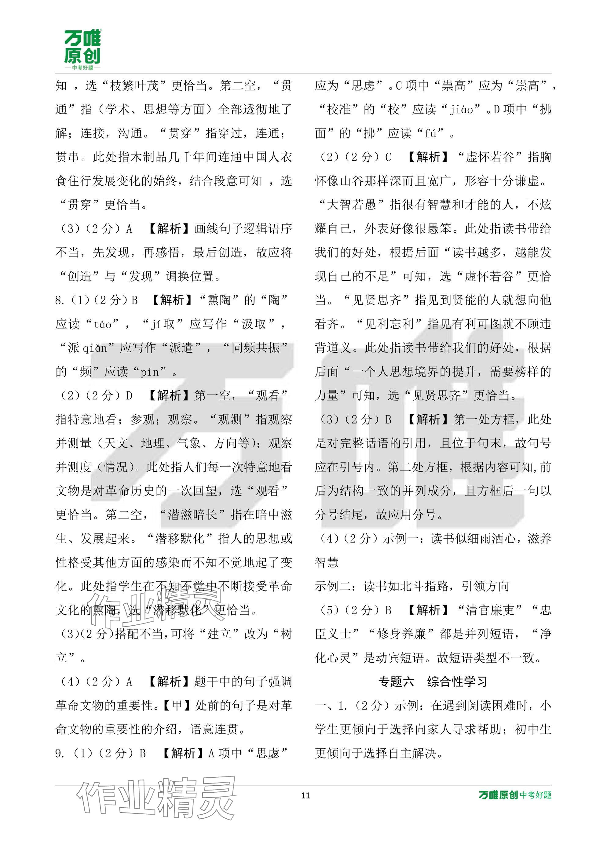 注:目前有些书本章节名称可能整理的还不是很完善,但都是按照顺序排列的,请同学们按照顺序仔细查找。练习册 2025年万唯中考试题研究语文山东专版 答案主要是用来给同学们做完题方便对答案用的,请勿直接抄袭。