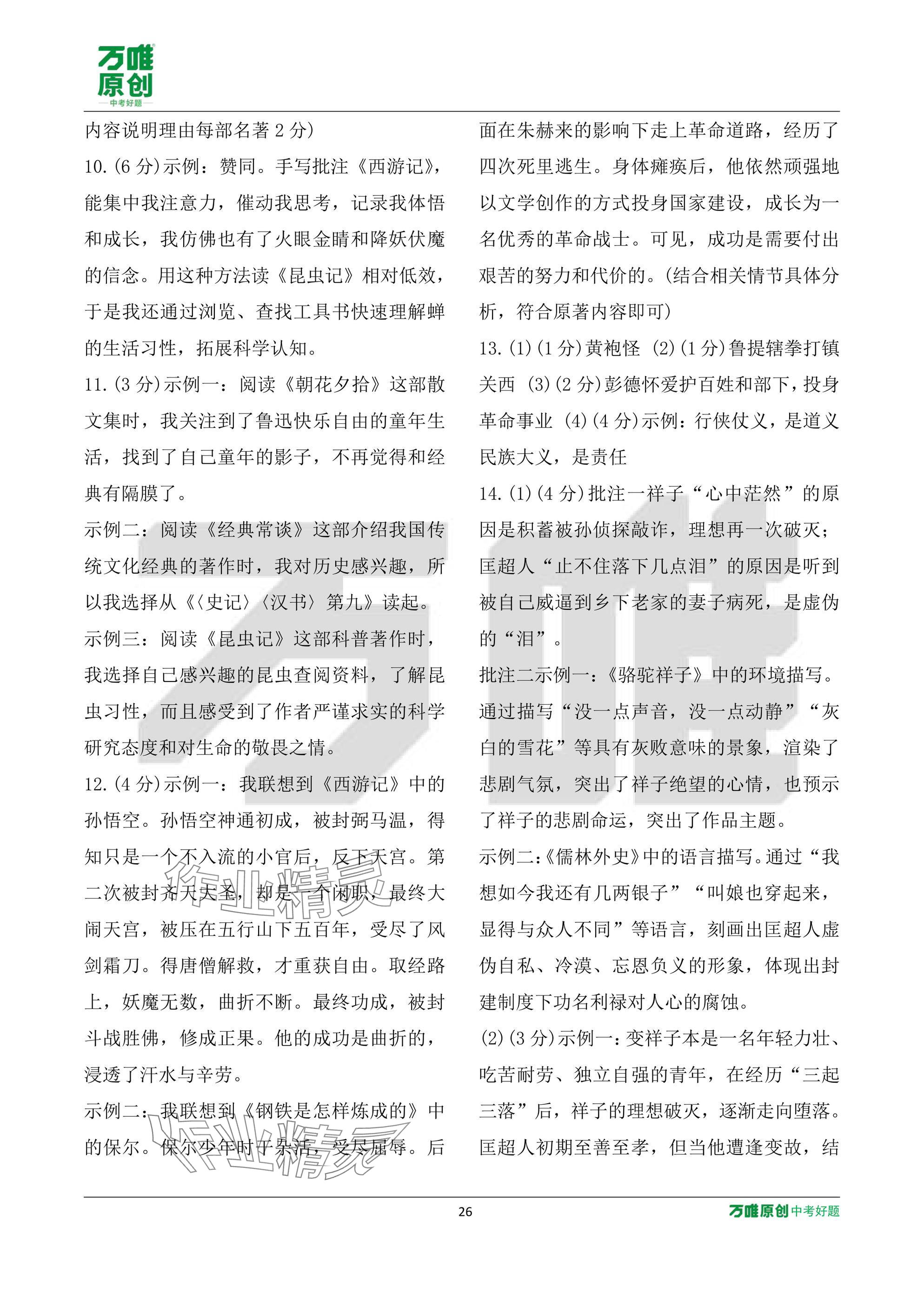 注:目前有些书本章节名称可能整理的还不是很完善,但都是按照顺序排列的,请同学们按照顺序仔细查找。练习册 2025年万唯中考试题研究语文山东专版 答案主要是用来给同学们做完题方便对答案用的,请勿直接抄袭。