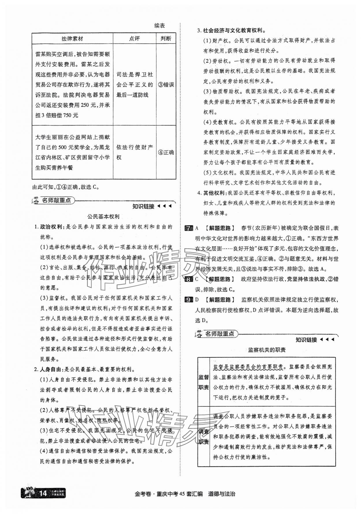 注:目前有些书本章节名称可能整理的还不是很完善,但都是按照顺序排列的,请同学们按照顺序仔细查找。练习册 2025年金考卷中考45套汇编道德与法治重庆专版 答案主要是用来给同学们做完题方便对答案用的,请勿直接抄袭。