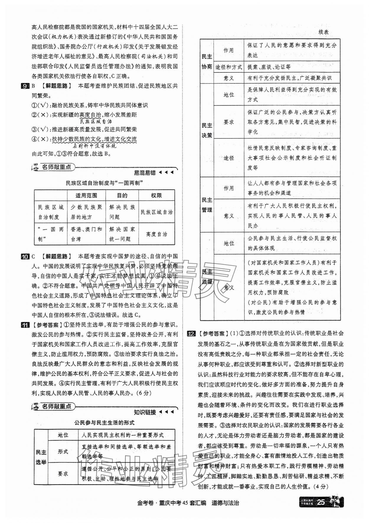 注:目前有些书本章节名称可能整理的还不是很完善,但都是按照顺序排列的,请同学们按照顺序仔细查找。练习册 2025年金考卷中考45套汇编道德与法治重庆专版 答案主要是用来给同学们做完题方便对答案用的,请勿直接抄袭。