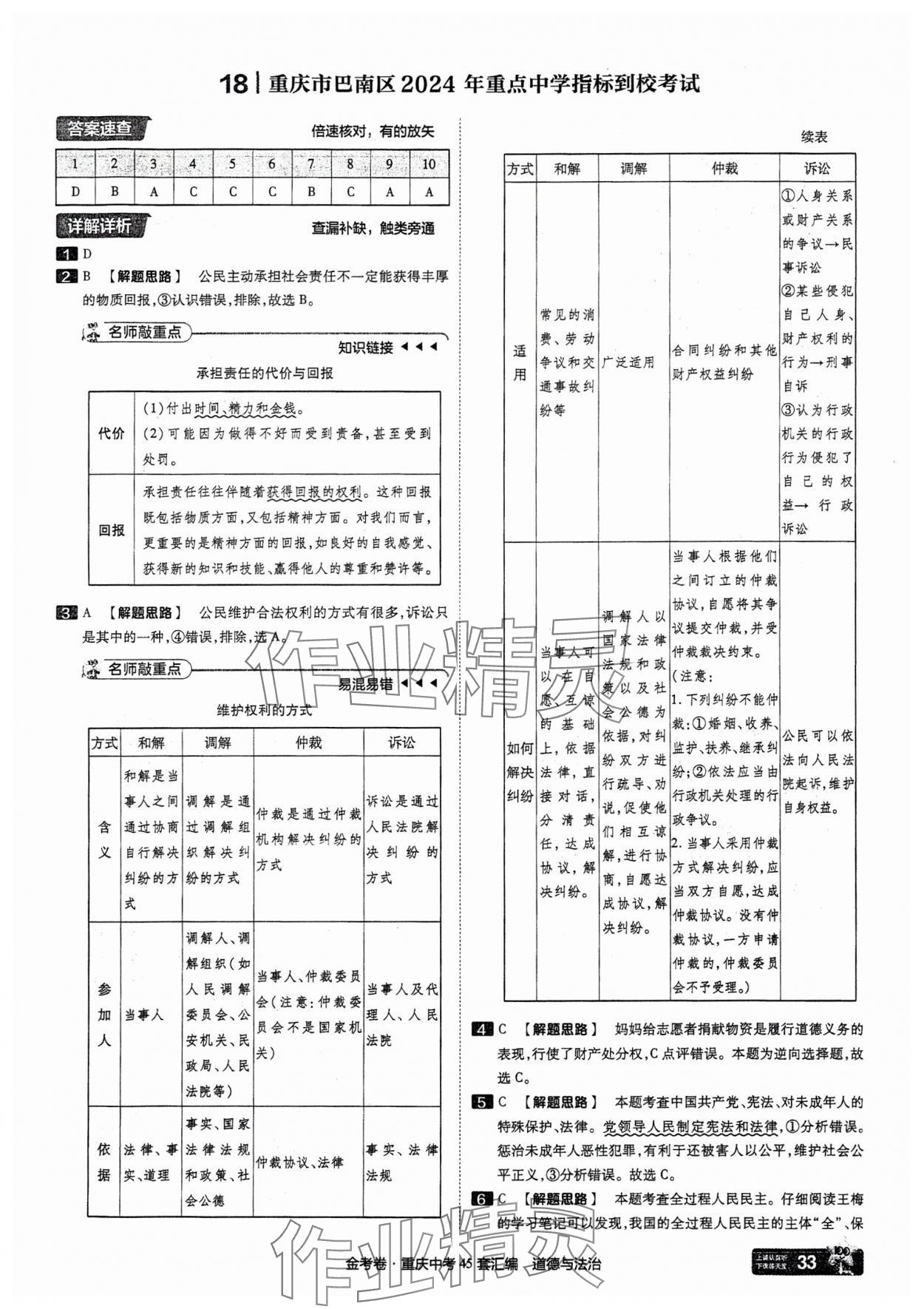 注:目前有些书本章节名称可能整理的还不是很完善,但都是按照顺序排列的,请同学们按照顺序仔细查找。练习册 2025年金考卷中考45套汇编道德与法治重庆专版 答案主要是用来给同学们做完题方便对答案用的,请勿直接抄袭。