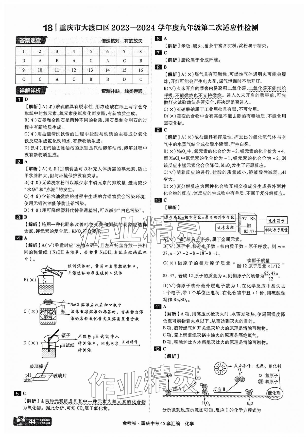 注:目前有些书本章节名称可能整理的还不是很完善,但都是按照顺序排列的,请同学们按照顺序仔细查找。练习册 2025年金考卷中考45套汇编化学重庆专版 答案主要是用来给同学们做完题方便对答案用的,请勿直接抄袭。