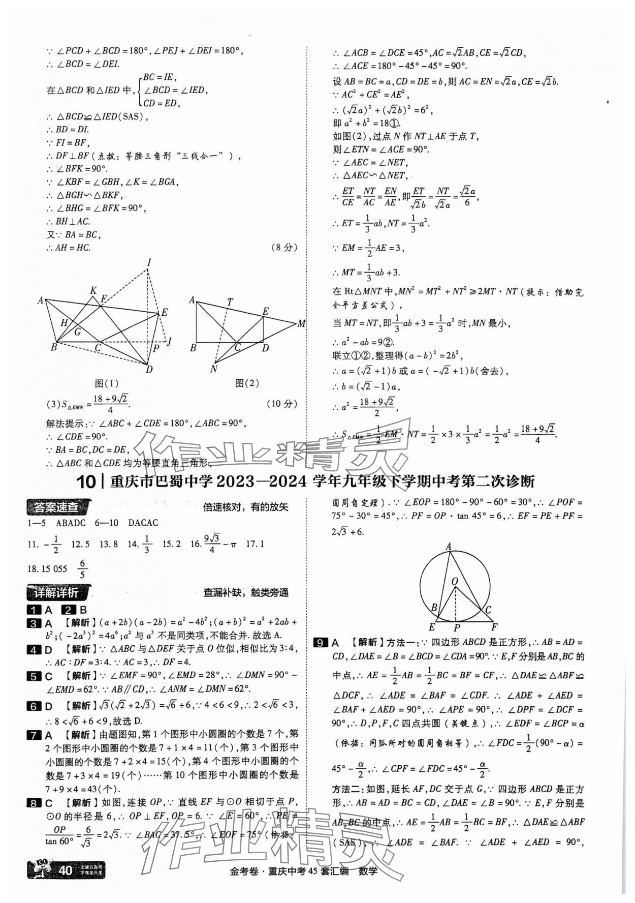 注:目前有些书本章节名称可能整理的还不是很完善,但都是按照顺序排列的,请同学们按照顺序仔细查找。练习册 2025年金考卷中考45套汇编数学重庆专版 答案主要是用来给同学们做完题方便对答案用的,请勿直接抄袭。