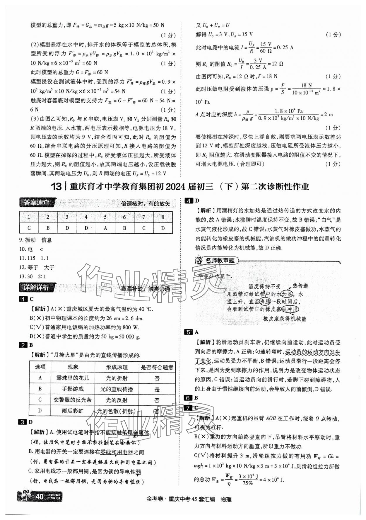 注:目前有些书本章节名称可能整理的还不是很完善,但都是按照顺序排列的,请同学们按照顺序仔细查找。练习册 2025年金考卷中考45套汇编物理重庆专版 答案主要是用来给同学们做完题方便对答案用的,请勿直接抄袭。