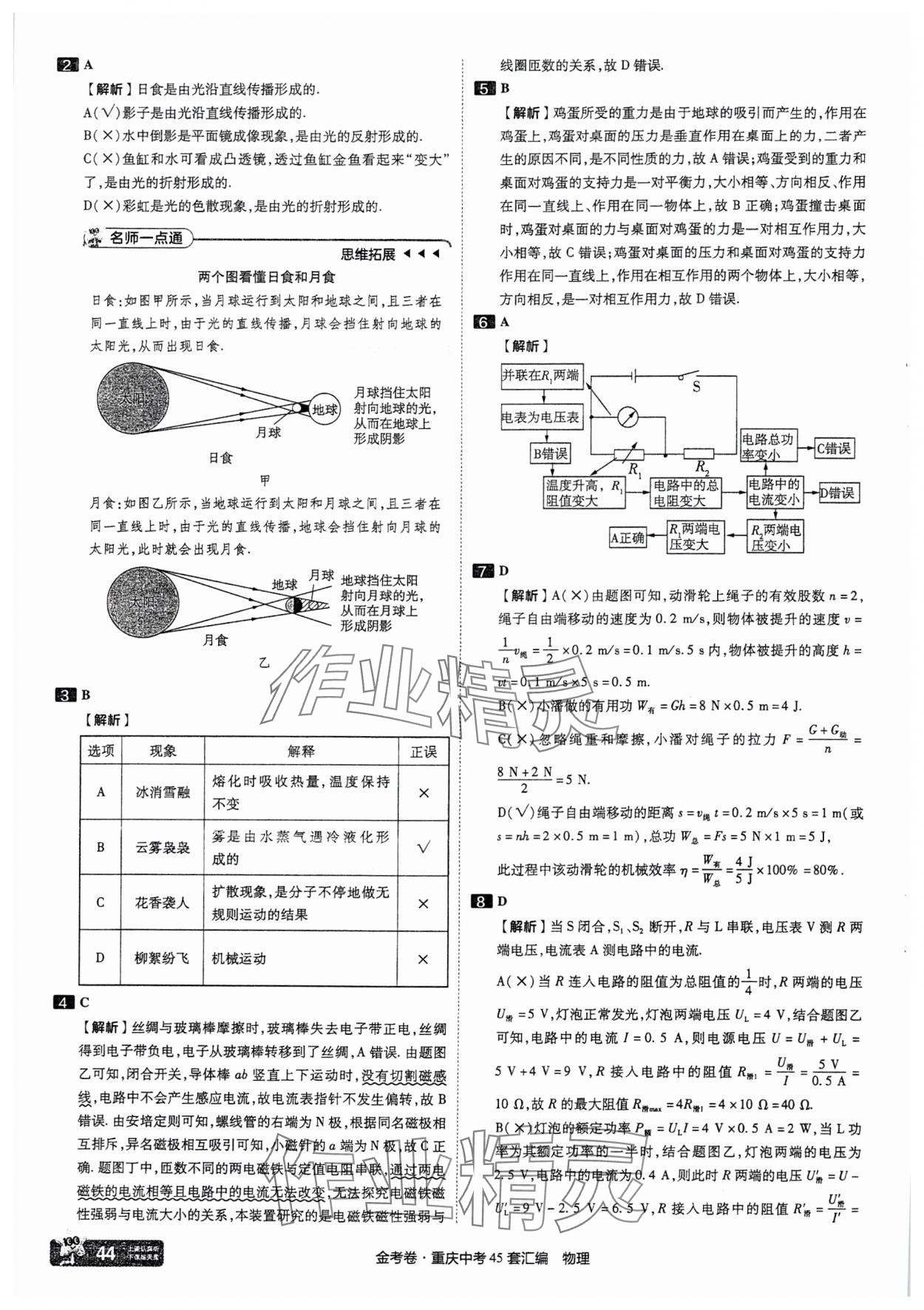 注:目前有些书本章节名称可能整理的还不是很完善,但都是按照顺序排列的,请同学们按照顺序仔细查找。练习册 2025年金考卷中考45套汇编物理重庆专版 答案主要是用来给同学们做完题方便对答案用的,请勿直接抄袭。