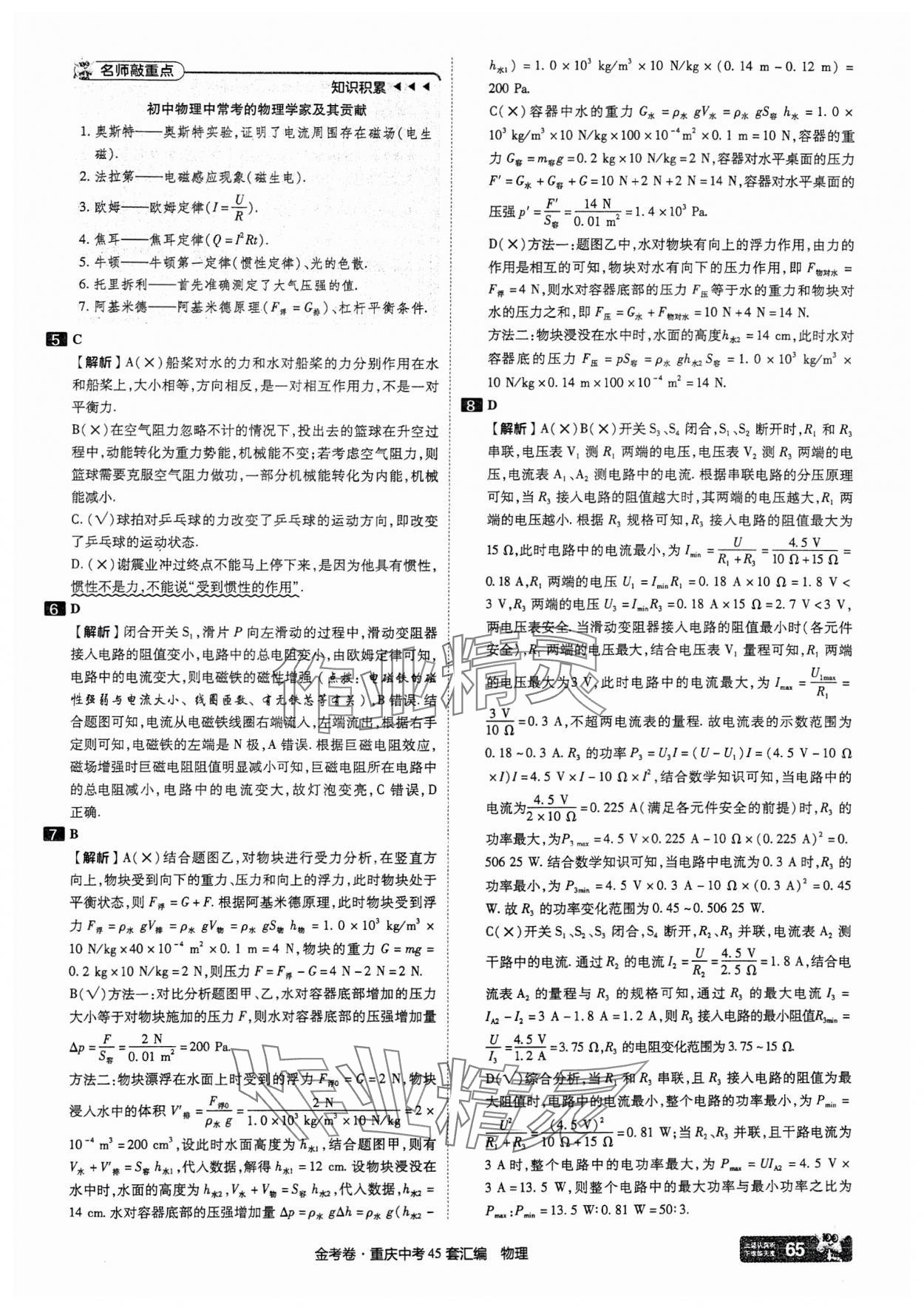 注:目前有些书本章节名称可能整理的还不是很完善,但都是按照顺序排列的,请同学们按照顺序仔细查找。练习册 2025年金考卷中考45套汇编物理重庆专版 答案主要是用来给同学们做完题方便对答案用的,请勿直接抄袭。