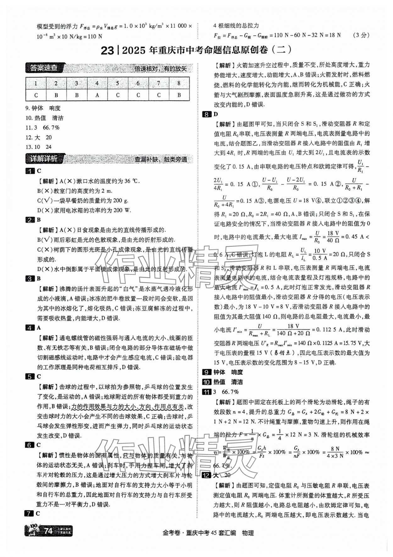 注:目前有些书本章节名称可能整理的还不是很完善,但都是按照顺序排列的,请同学们按照顺序仔细查找。练习册 2025年金考卷中考45套汇编物理重庆专版 答案主要是用来给同学们做完题方便对答案用的,请勿直接抄袭。