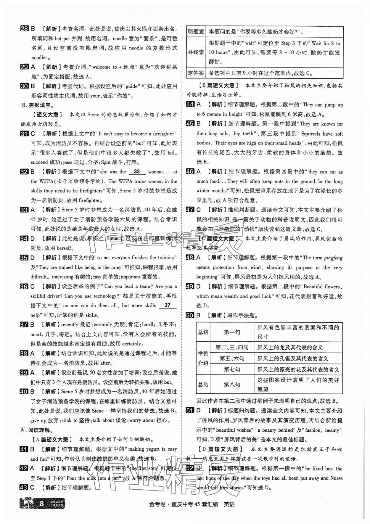 注:目前有些书本章节名称可能整理的还不是很完善,但都是按照顺序排列的,请同学们按照顺序仔细查找。练习册 2025年金考卷中考45套汇编英语重庆专版 答案主要是用来给同学们做完题方便对答案用的,请勿直接抄袭。