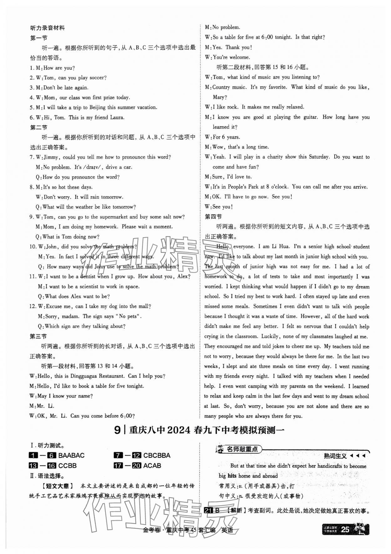 注:目前有些书本章节名称可能整理的还不是很完善,但都是按照顺序排列的,请同学们按照顺序仔细查找。练习册 2025年金考卷中考45套汇编英语重庆专版 答案主要是用来给同学们做完题方便对答案用的,请勿直接抄袭。