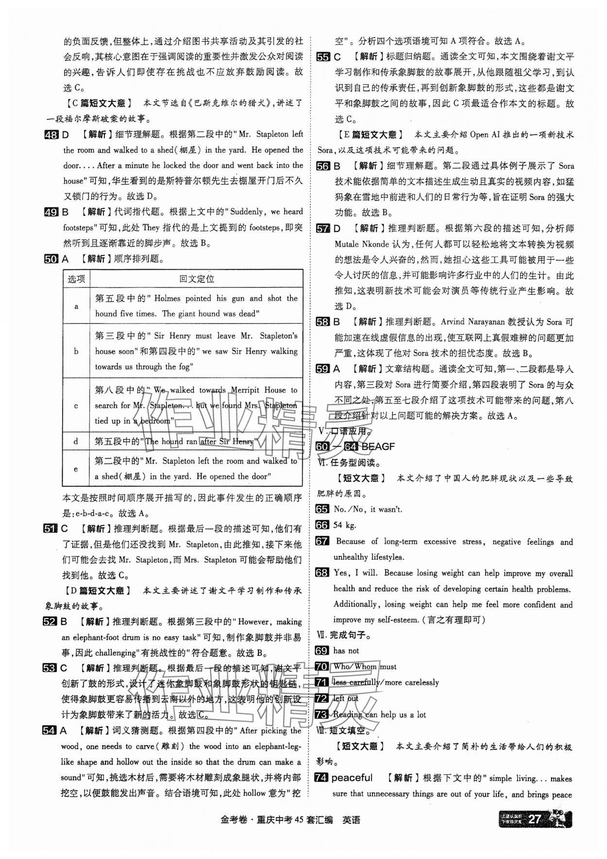 注:目前有些书本章节名称可能整理的还不是很完善,但都是按照顺序排列的,请同学们按照顺序仔细查找。练习册 2025年金考卷中考45套汇编英语重庆专版 答案主要是用来给同学们做完题方便对答案用的,请勿直接抄袭。