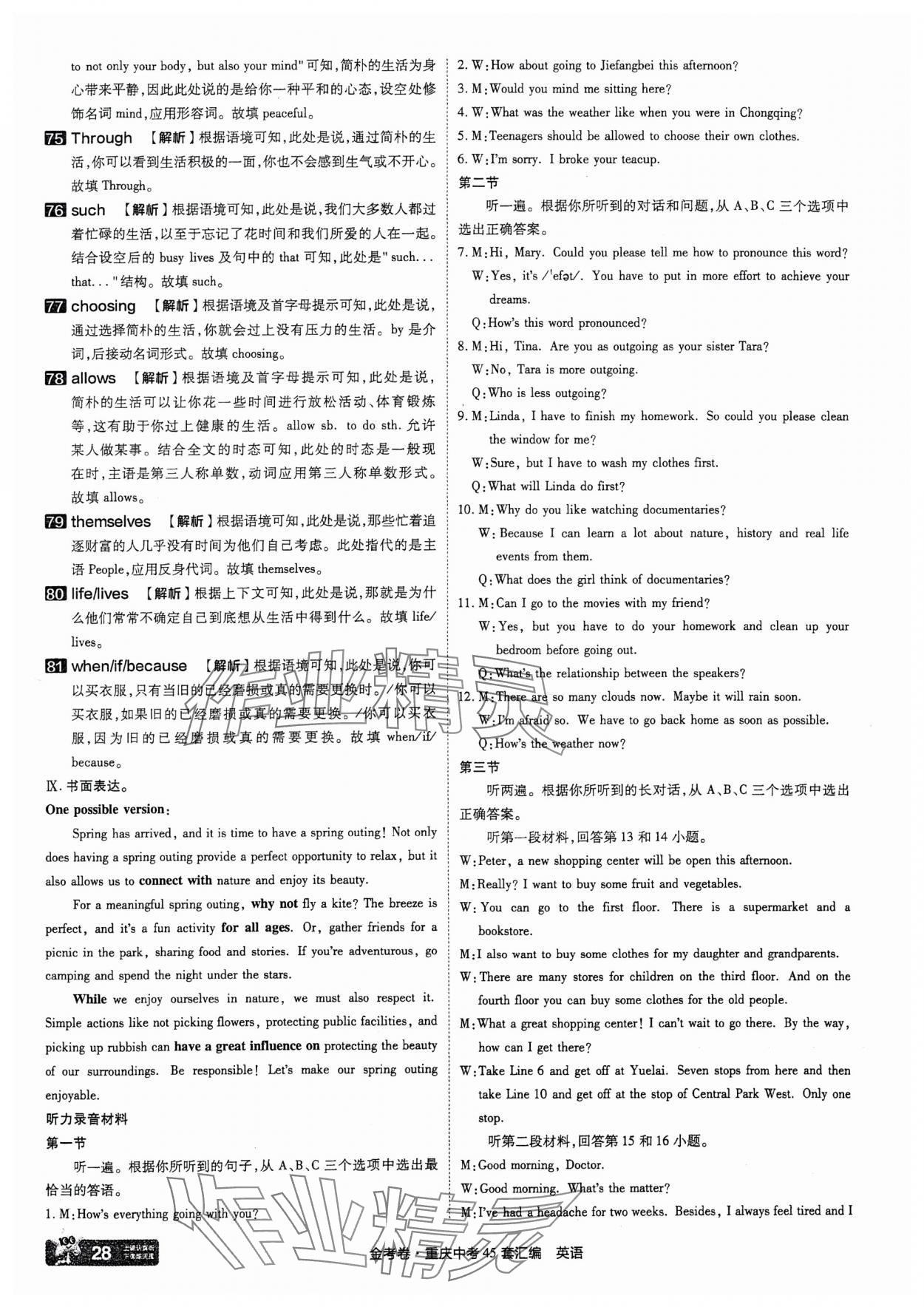 注:目前有些书本章节名称可能整理的还不是很完善,但都是按照顺序排列的,请同学们按照顺序仔细查找。练习册 2025年金考卷中考45套汇编英语重庆专版 答案主要是用来给同学们做完题方便对答案用的,请勿直接抄袭。