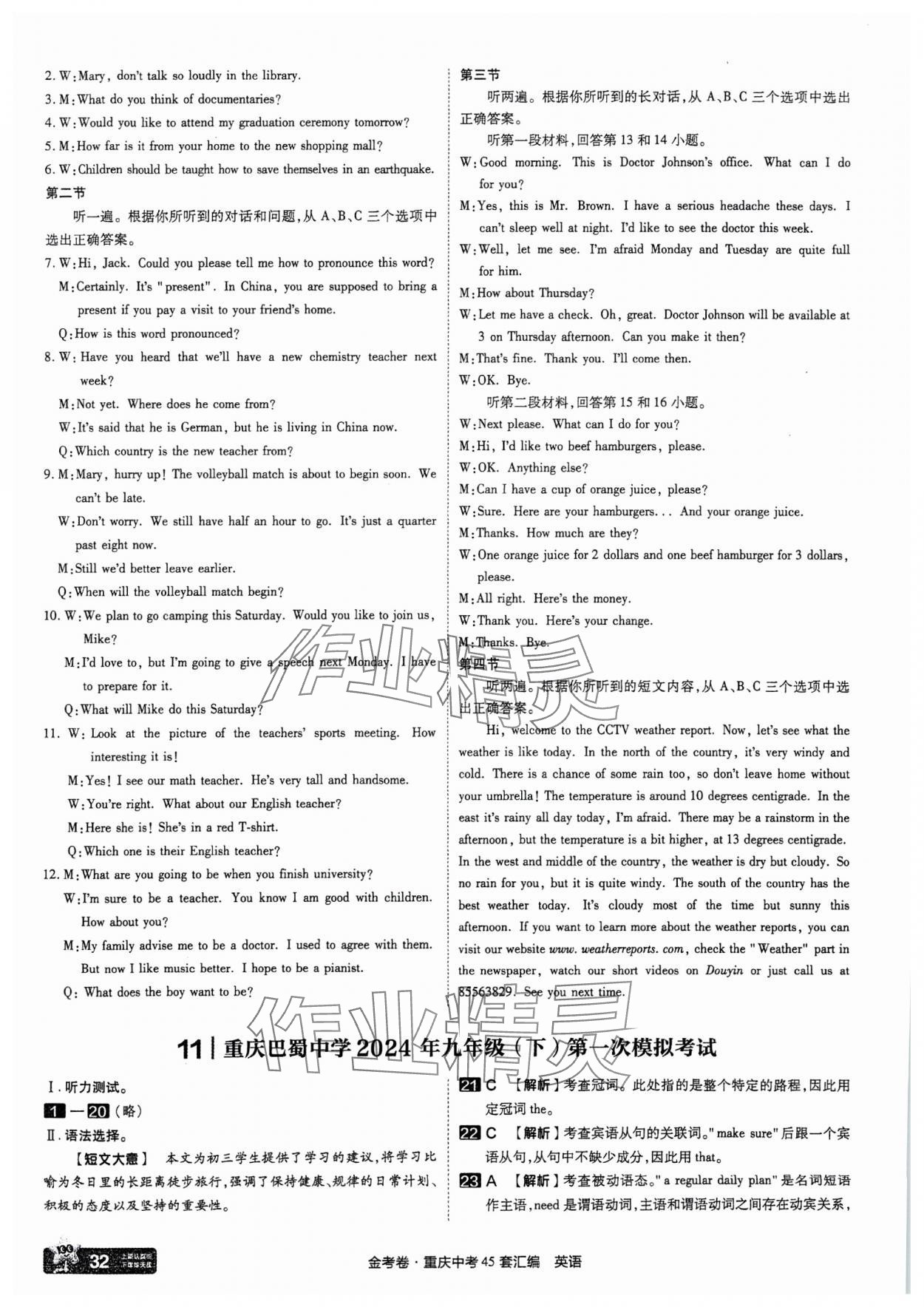 注:目前有些书本章节名称可能整理的还不是很完善,但都是按照顺序排列的,请同学们按照顺序仔细查找。练习册 2025年金考卷中考45套汇编英语重庆专版 答案主要是用来给同学们做完题方便对答案用的,请勿直接抄袭。