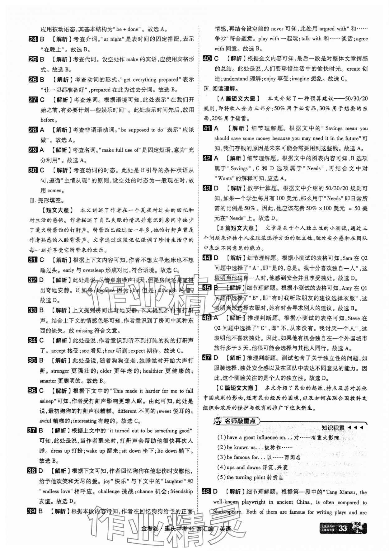 注:目前有些书本章节名称可能整理的还不是很完善,但都是按照顺序排列的,请同学们按照顺序仔细查找。练习册 2025年金考卷中考45套汇编英语重庆专版 答案主要是用来给同学们做完题方便对答案用的,请勿直接抄袭。