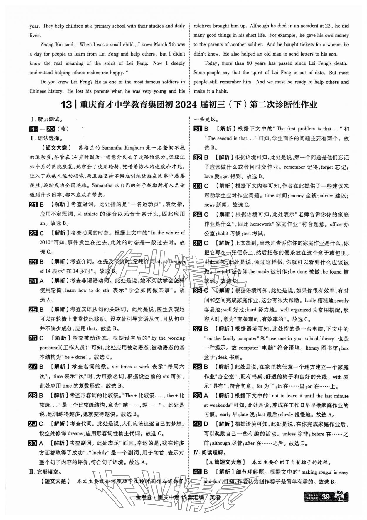 注:目前有些书本章节名称可能整理的还不是很完善,但都是按照顺序排列的,请同学们按照顺序仔细查找。练习册 2025年金考卷中考45套汇编英语重庆专版 答案主要是用来给同学们做完题方便对答案用的,请勿直接抄袭。