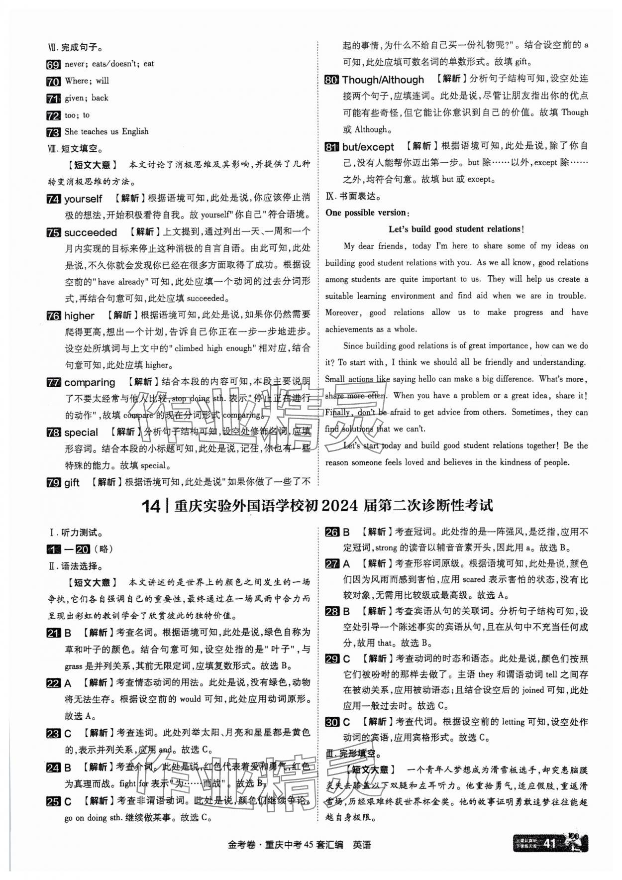 注:目前有些书本章节名称可能整理的还不是很完善,但都是按照顺序排列的,请同学们按照顺序仔细查找。练习册 2025年金考卷中考45套汇编英语重庆专版 答案主要是用来给同学们做完题方便对答案用的,请勿直接抄袭。