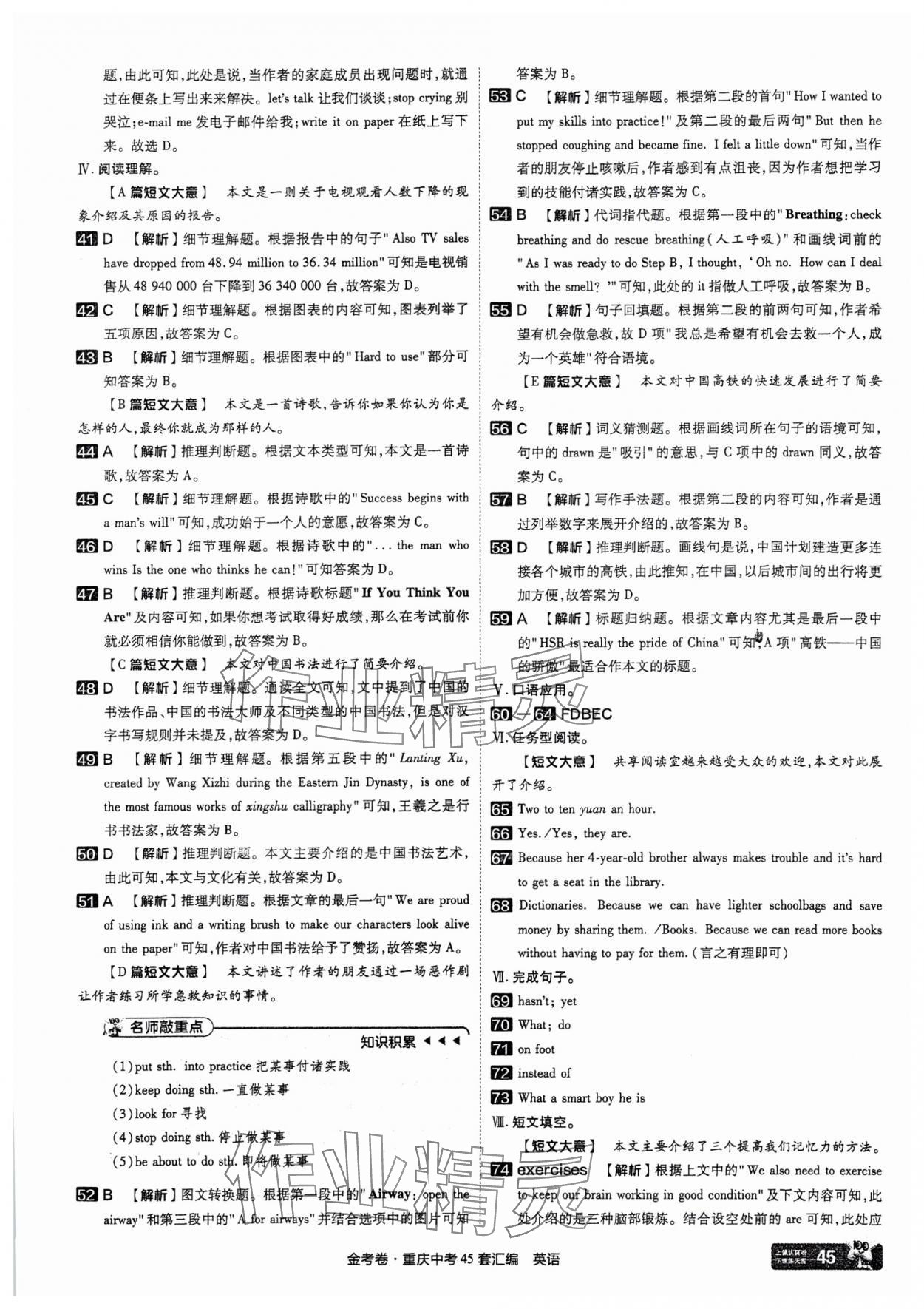 注:目前有些书本章节名称可能整理的还不是很完善,但都是按照顺序排列的,请同学们按照顺序仔细查找。练习册 2025年金考卷中考45套汇编英语重庆专版 答案主要是用来给同学们做完题方便对答案用的,请勿直接抄袭。
