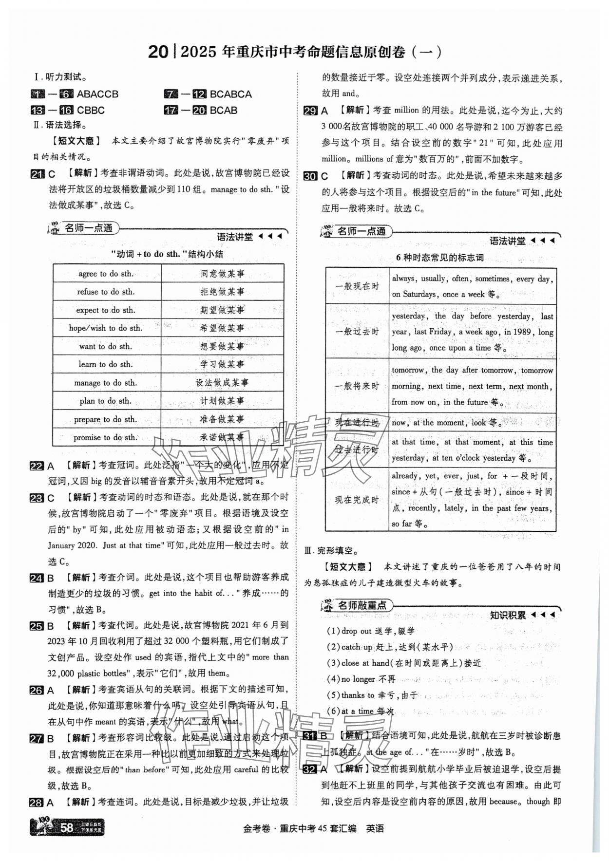 注:目前有些书本章节名称可能整理的还不是很完善,但都是按照顺序排列的,请同学们按照顺序仔细查找。练习册 2025年金考卷中考45套汇编英语重庆专版 答案主要是用来给同学们做完题方便对答案用的,请勿直接抄袭。