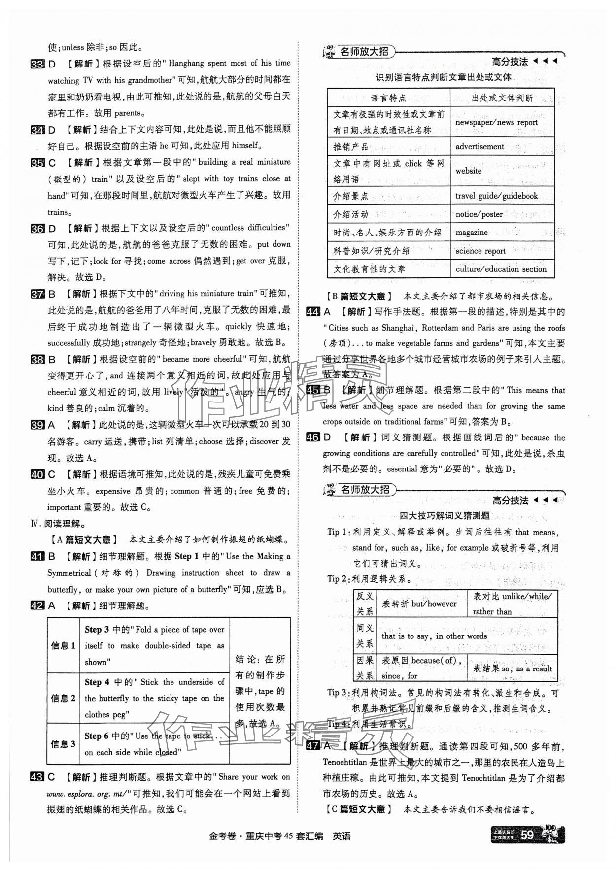 注:目前有些书本章节名称可能整理的还不是很完善,但都是按照顺序排列的,请同学们按照顺序仔细查找。练习册 2025年金考卷中考45套汇编英语重庆专版 答案主要是用来给同学们做完题方便对答案用的,请勿直接抄袭。