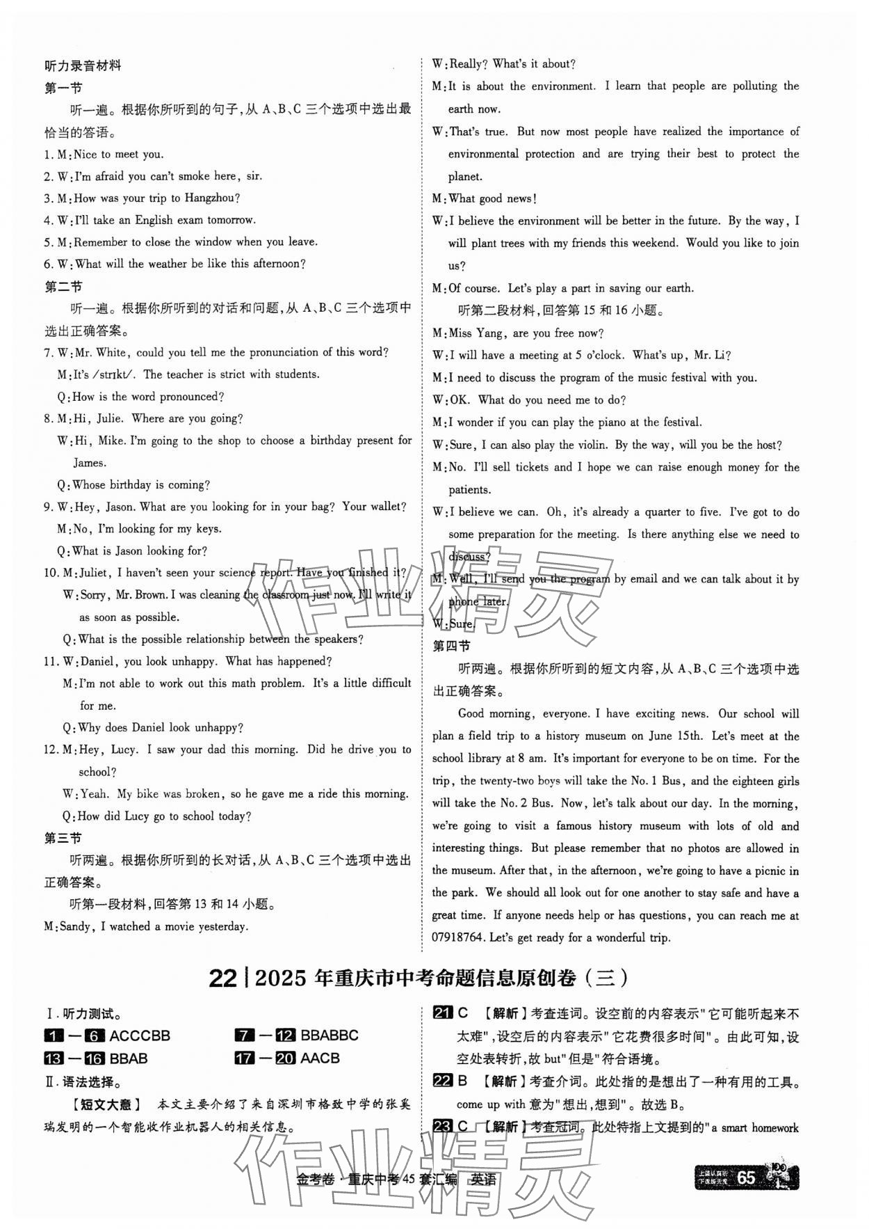 注:目前有些书本章节名称可能整理的还不是很完善,但都是按照顺序排列的,请同学们按照顺序仔细查找。练习册 2025年金考卷中考45套汇编英语重庆专版 答案主要是用来给同学们做完题方便对答案用的,请勿直接抄袭。