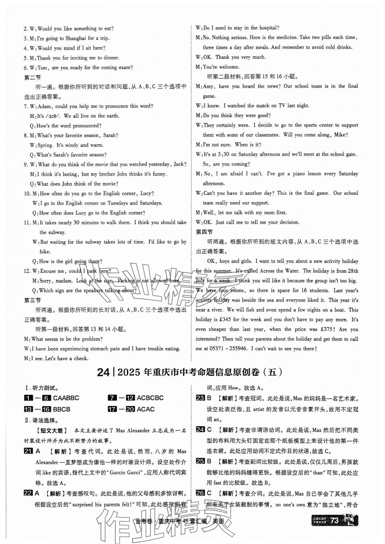 注:目前有些书本章节名称可能整理的还不是很完善,但都是按照顺序排列的,请同学们按照顺序仔细查找。练习册 2025年金考卷中考45套汇编英语重庆专版 答案主要是用来给同学们做完题方便对答案用的,请勿直接抄袭。