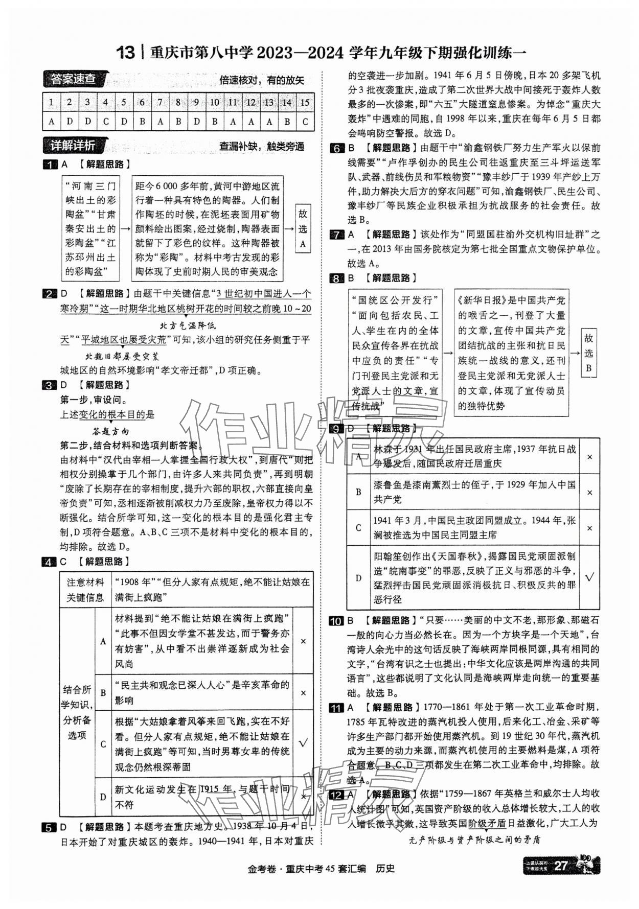 注:目前有些书本章节名称可能整理的还不是很完善,但都是按照顺序排列的,请同学们按照顺序仔细查找。练习册 2025年金考卷中考45套汇编历史重庆专版 答案主要是用来给同学们做完题方便对答案用的,请勿直接抄袭。