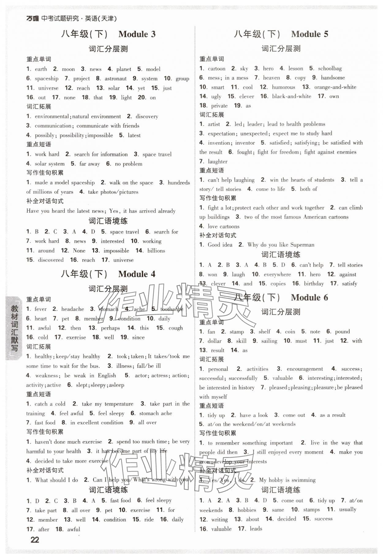 注:目前有些书本章节名称可能整理的还不是很完善,但都是按照顺序排列的,请同学们按照顺序仔细查找。练习册 2025年万唯中考试题研究英语天津专版 答案主要是用来给同学们做完题方便对答案用的,请勿直接抄袭。