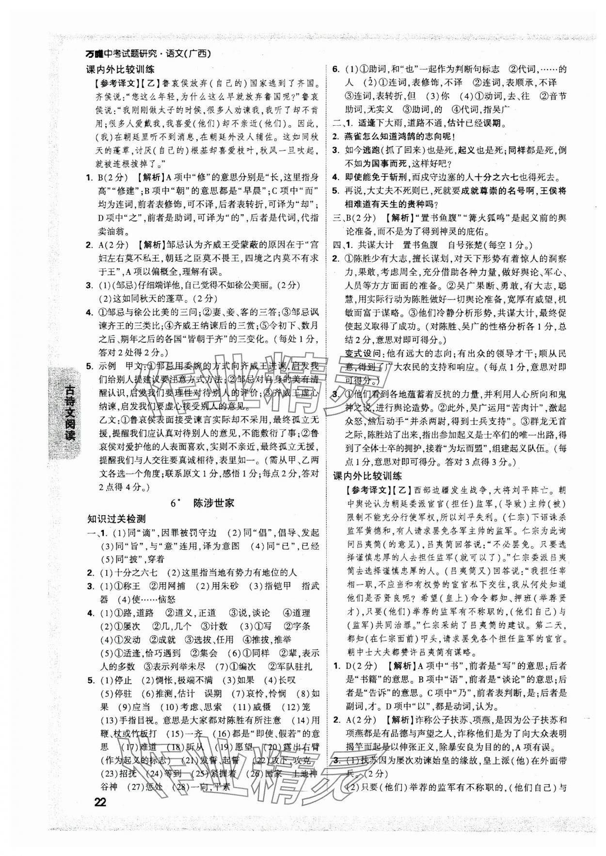 注:目前有些书本章节名称可能整理的还不是很完善,但都是按照顺序排列的,请同学们按照顺序仔细查找。练习册 2025年万唯中考试题研究语文广西专版 答案主要是用来给同学们做完题方便对答案用的,请勿直接抄袭。