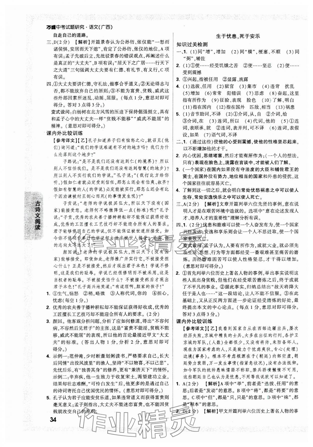 注:目前有些书本章节名称可能整理的还不是很完善,但都是按照顺序排列的,请同学们按照顺序仔细查找。练习册 2025年万唯中考试题研究语文广西专版 答案主要是用来给同学们做完题方便对答案用的,请勿直接抄袭。