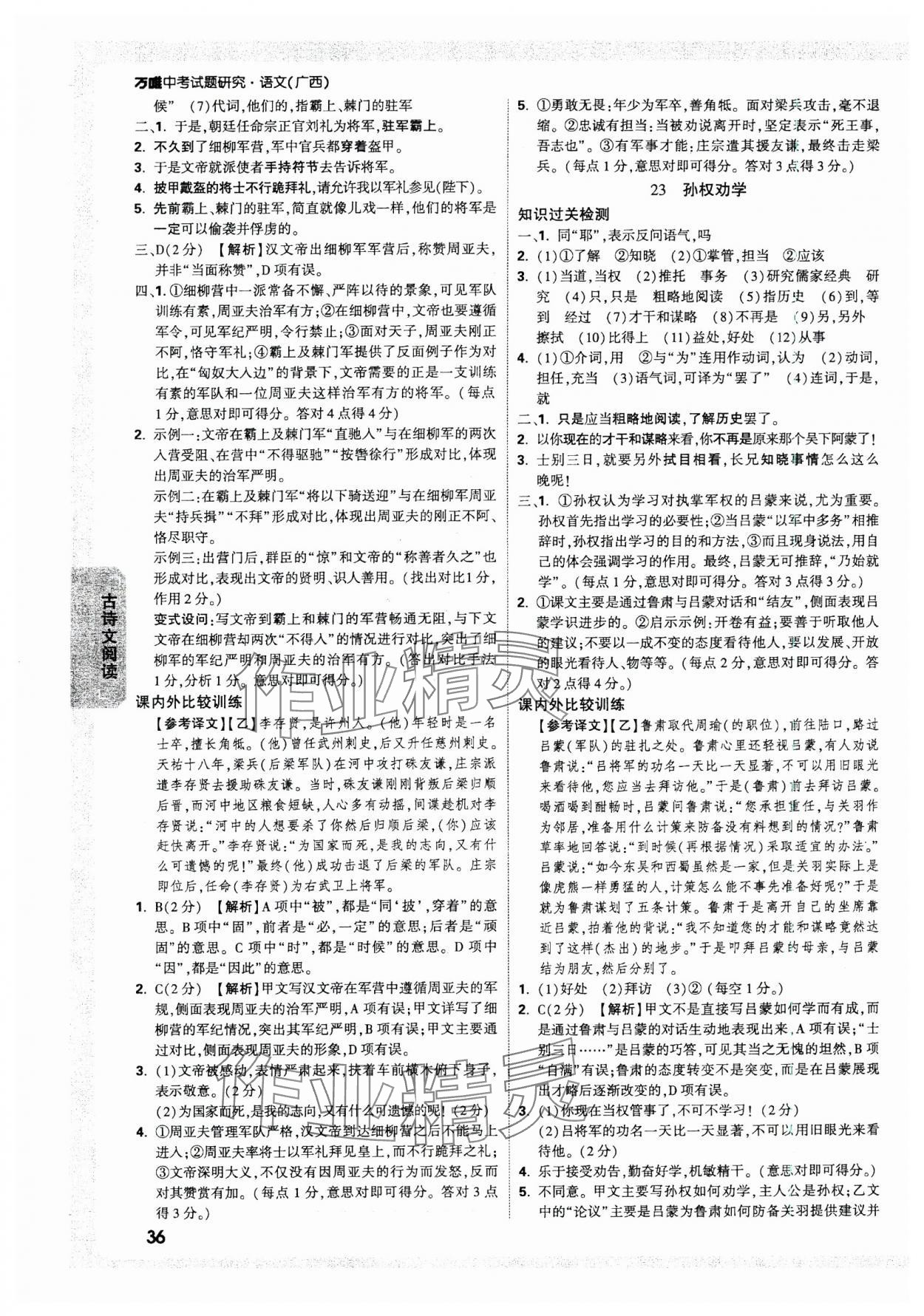 注:目前有些书本章节名称可能整理的还不是很完善,但都是按照顺序排列的,请同学们按照顺序仔细查找。练习册 2025年万唯中考试题研究语文广西专版 答案主要是用来给同学们做完题方便对答案用的,请勿直接抄袭。