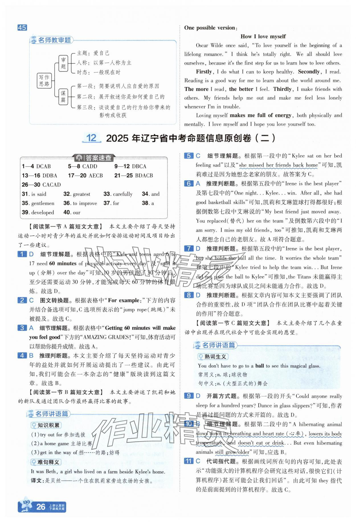 注:目前有些书本章节名称可能整理的还不是很完善,但都是按照顺序排列的,请同学们按照顺序仔细查找。练习册 2025年金考卷中考45套汇编英语辽宁专版 答案主要是用来给同学们做完题方便对答案用的,请勿直接抄袭。