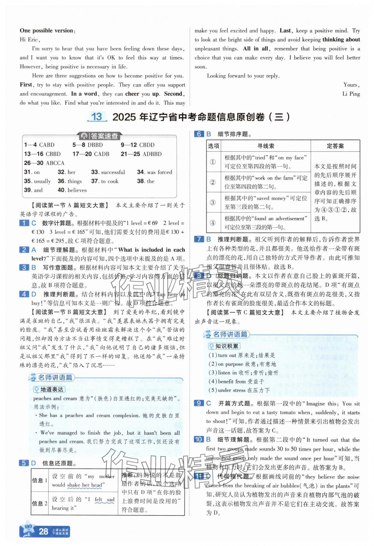 注:目前有些书本章节名称可能整理的还不是很完善,但都是按照顺序排列的,请同学们按照顺序仔细查找。练习册 2025年金考卷中考45套汇编英语辽宁专版 答案主要是用来给同学们做完题方便对答案用的,请勿直接抄袭。
