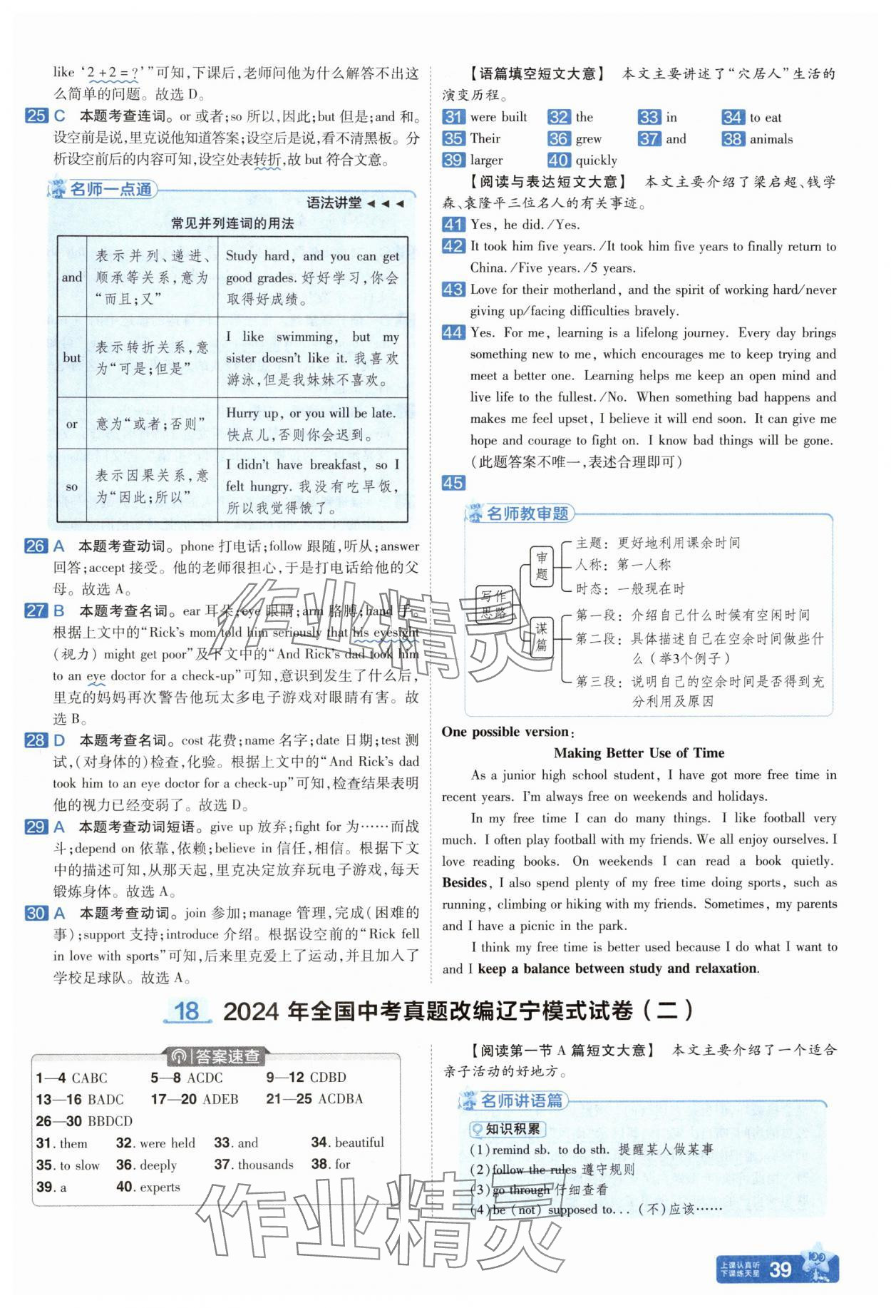注:目前有些书本章节名称可能整理的还不是很完善,但都是按照顺序排列的,请同学们按照顺序仔细查找。练习册 2025年金考卷中考45套汇编英语辽宁专版 答案主要是用来给同学们做完题方便对答案用的,请勿直接抄袭。