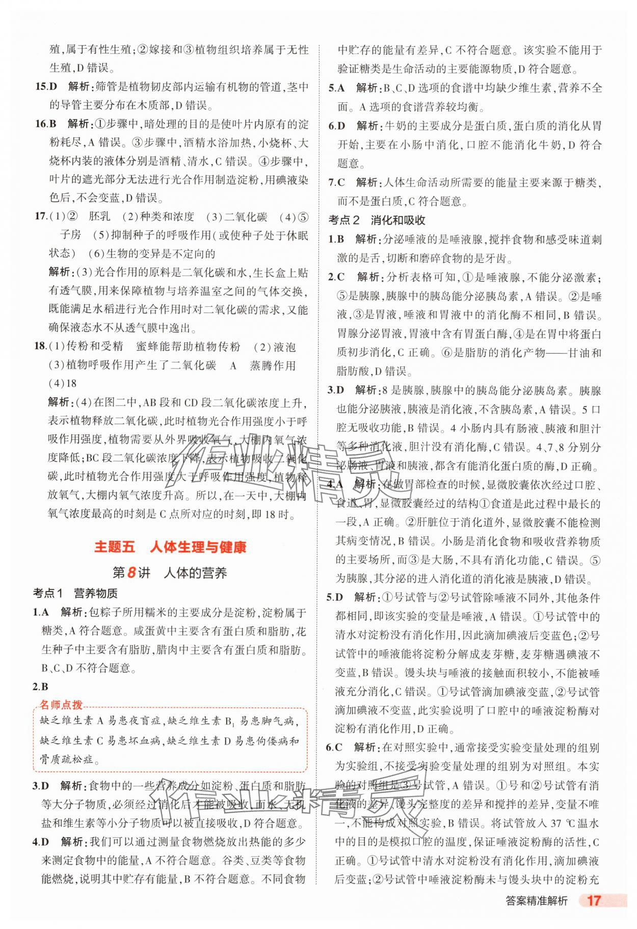 注:目前有些书本章节名称可能整理的还不是很完善,但都是按照顺序排列的,请同学们按照顺序仔细查找。练习册 2025年5年中考3年模拟生物中考山东专版 答案主要是用来给同学们做完题方便对答案用的,请勿直接抄袭。