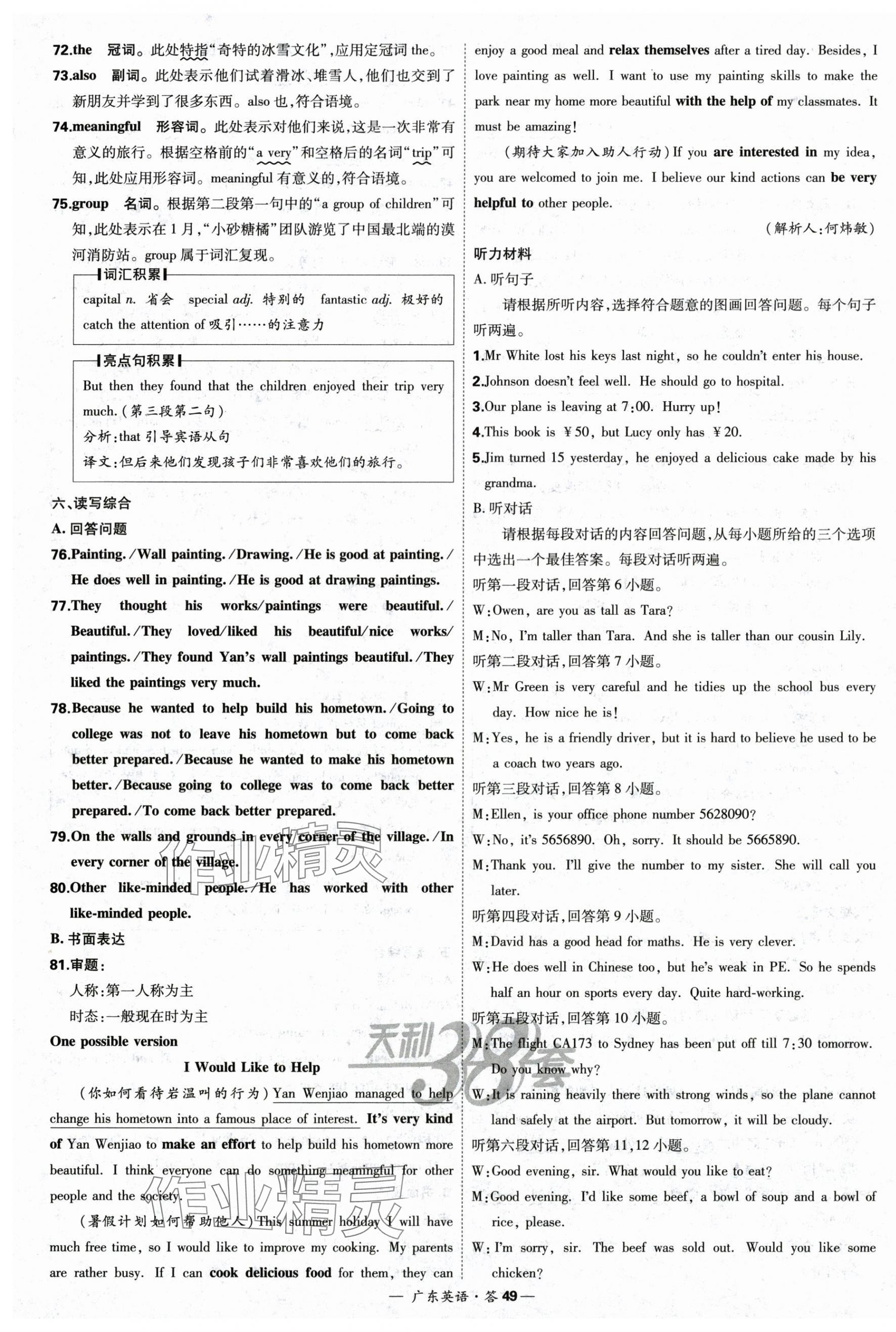 注:目前有些书本章节名称可能整理的还不是很完善,但都是按照顺序排列的,请同学们按照顺序仔细查找。练习册 2025年天利38套广东省中考试题精选英语 答案主要是用来给同学们做完题方便对答案用的,请勿直接抄袭。