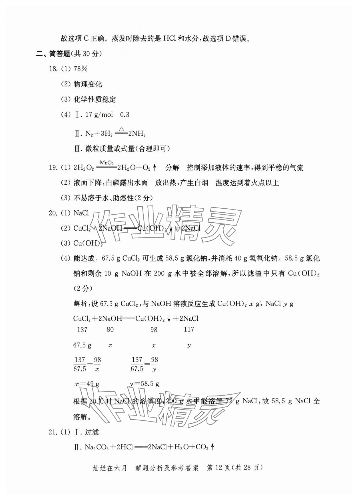 注:目前有些书本章节名称可能整理的还不是很完善,但都是按照顺序排列的,请同学们按照顺序仔细查找。练习册 2025年灿烂在六月模拟强化测试精编化学 答案主要是用来给同学们做完题方便对答案用的,请勿直接抄袭。