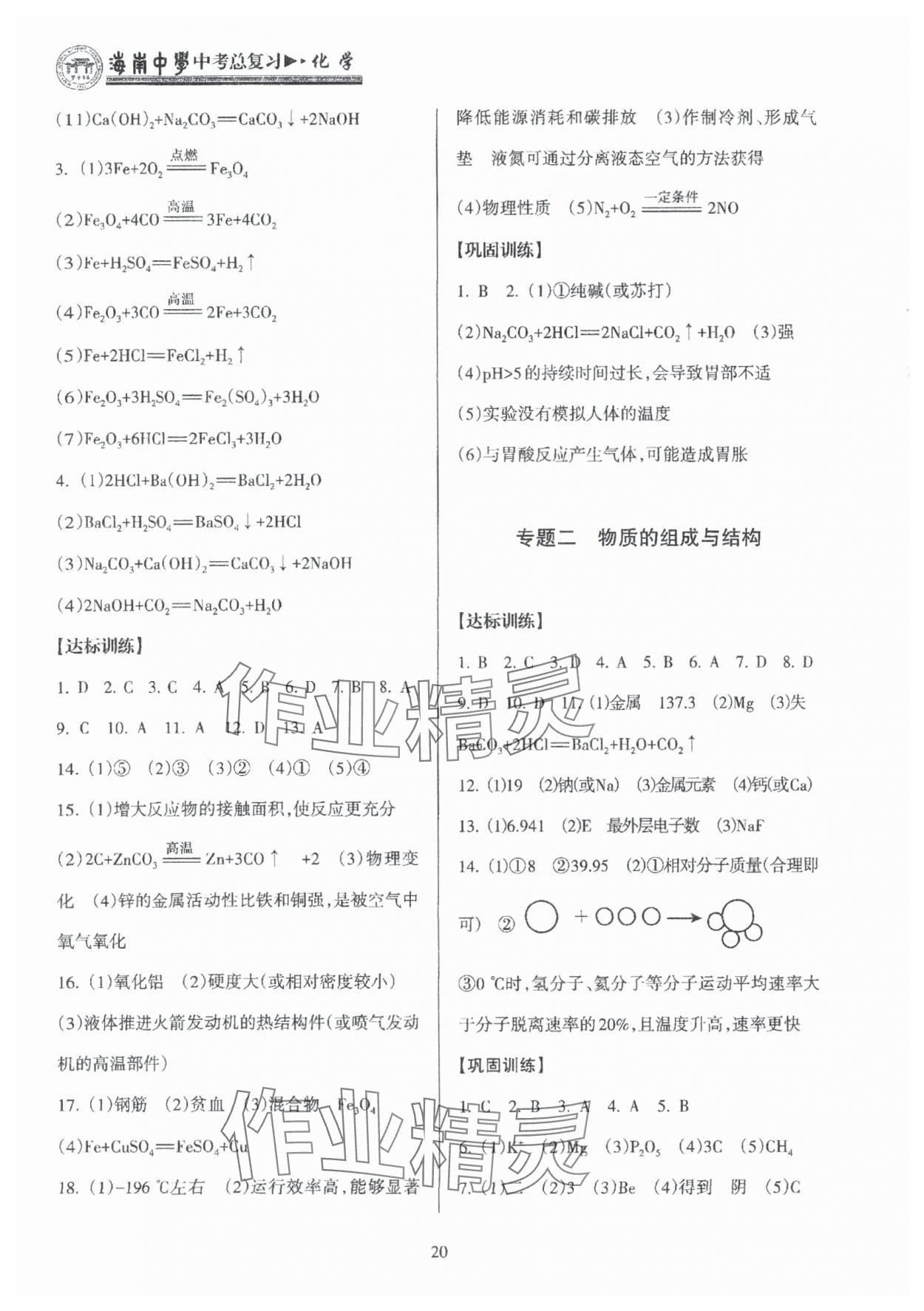 注:目前有些书本章节名称可能整理的还不是很完善,但都是按照顺序排列的,请同学们按照顺序仔细查找。练习册 2025年海南中学中考总复习化学人教版 答案主要是用来给同学们做完题方便对答案用的,请勿直接抄袭。