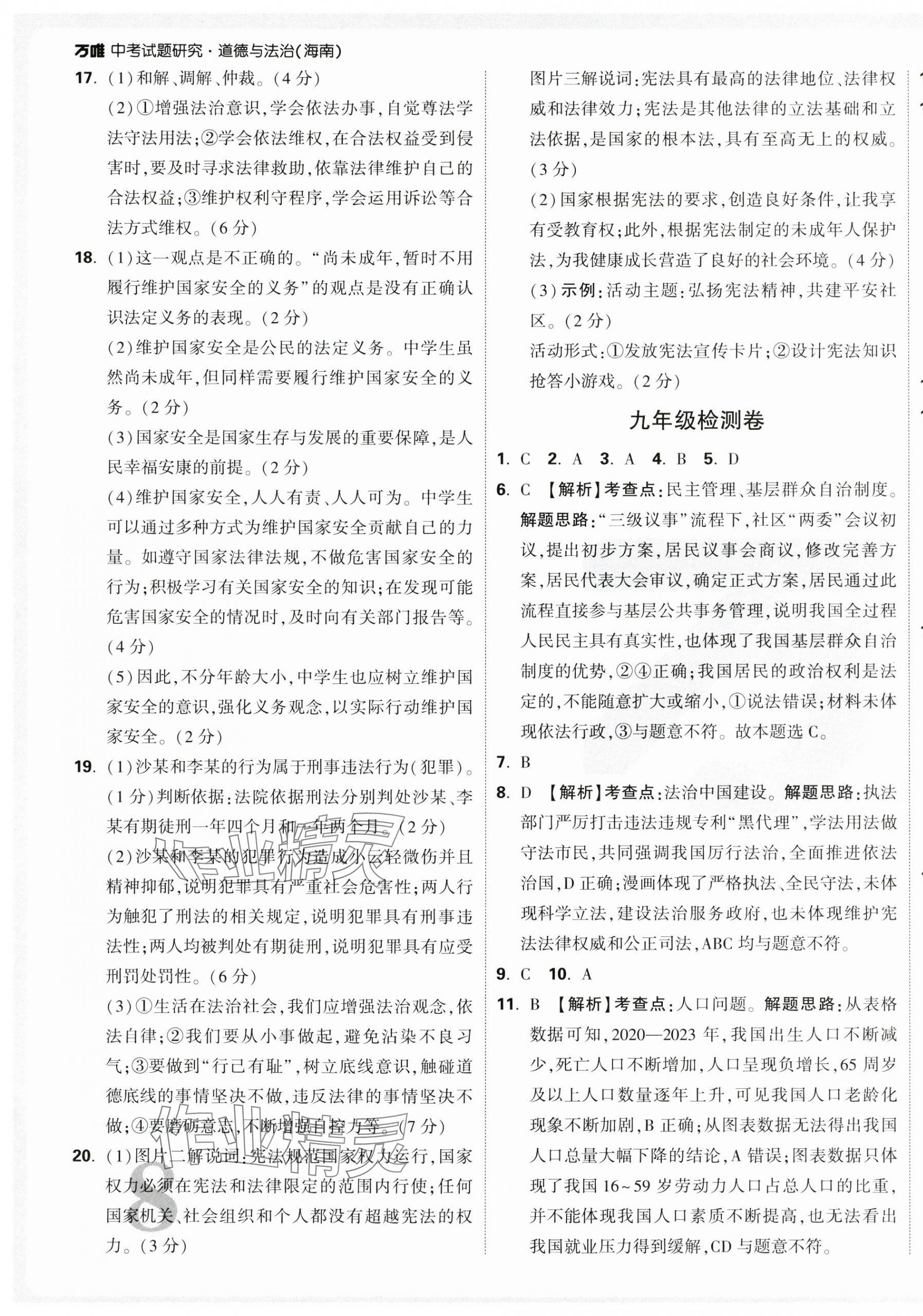 注:目前有些书本章节名称可能整理的还不是很完善,但都是按照顺序排列的,请同学们按照顺序仔细查找。练习册 2025年万唯中考试题研究道德与法治海南专版 答案主要是用来给同学们做完题方便对答案用的,请勿直接抄袭。