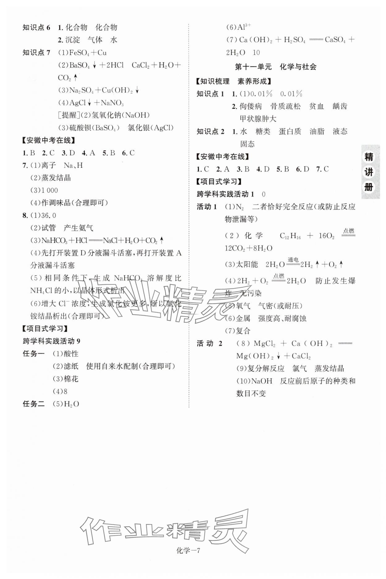 注:目前有些书本章节名称可能整理的还不是很完善,但都是按照顺序排列的,请同学们按照顺序仔细查找。练习册 2025年皖智教育优考设计化学中考人教版安徽专版 答案主要是用来给同学们做完题方便对答案用的,请勿直接抄袭。