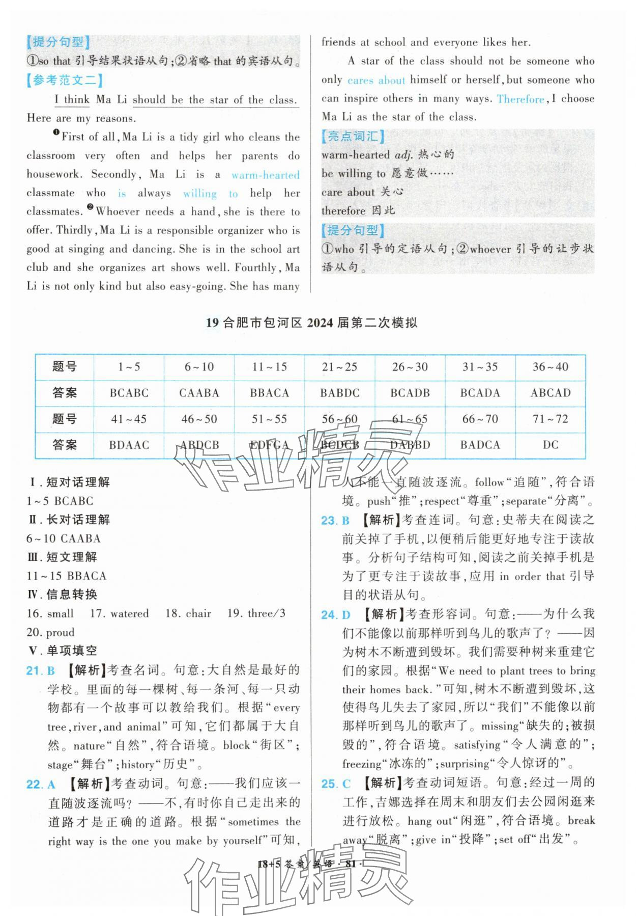 注:目前有些书本章节名称可能整理的还不是很完善,但都是按照顺序排列的,请同学们按照顺序仔细查找。练习册 2025年中考试题精编安徽师范大学出版社英语中考安徽专版 答案主要是用来给同学们做完题方便对答案用的,请勿直接抄袭。