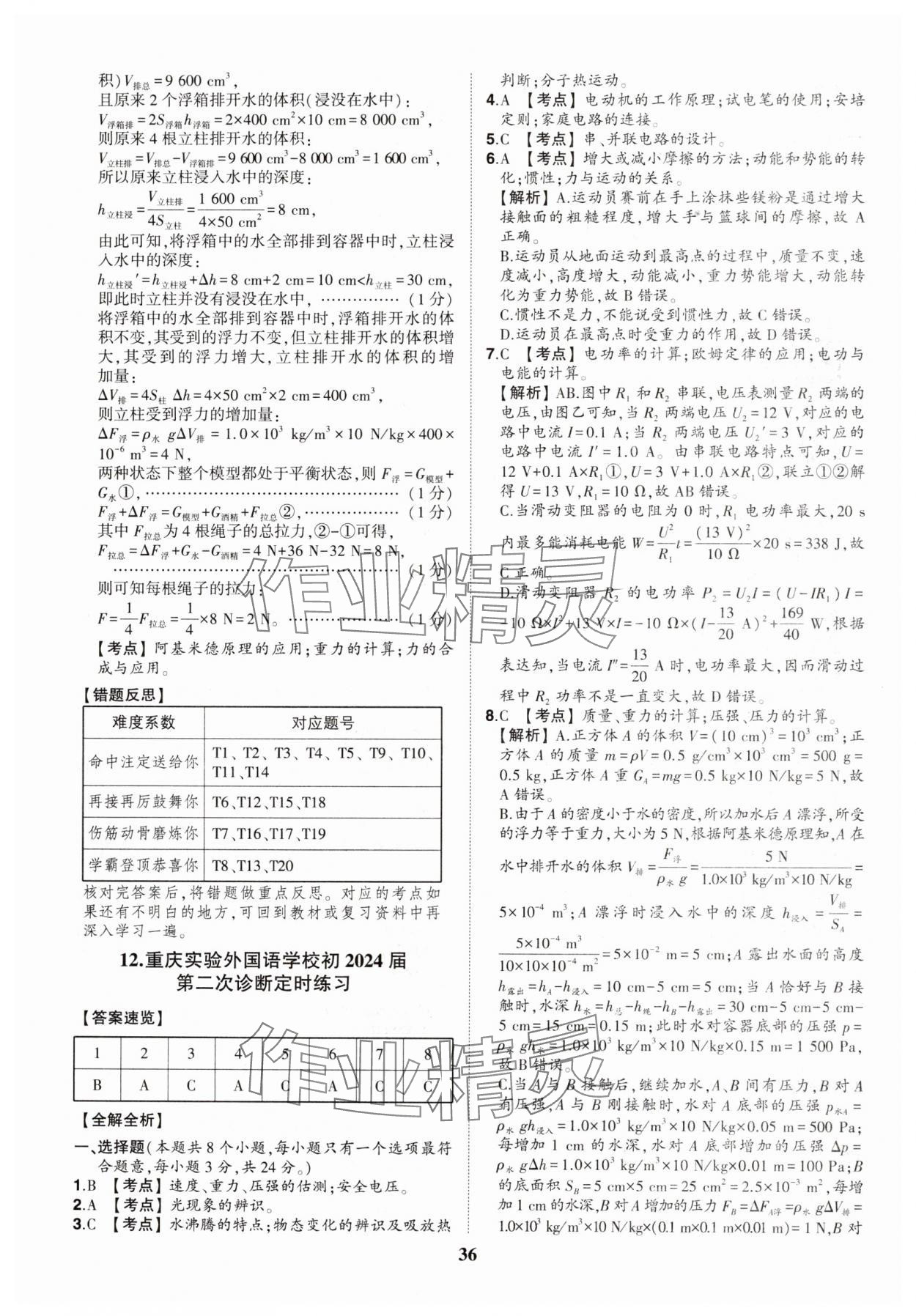 注:目前有些书本章节名称可能整理的还不是很完善,但都是按照顺序排列的,请同学们按照顺序仔细查找。练习册 2025年智乐星中考中考真题汇编物理重庆专版 答案主要是用来给同学们做完题方便对答案用的,请勿直接抄袭。