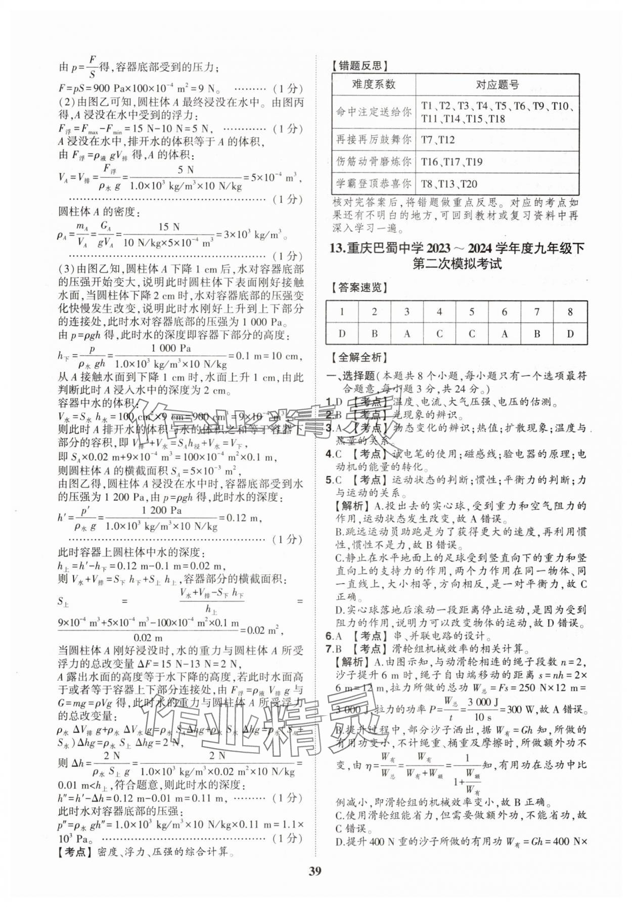 注:目前有些书本章节名称可能整理的还不是很完善,但都是按照顺序排列的,请同学们按照顺序仔细查找。练习册 2025年智乐星中考中考真题汇编物理重庆专版 答案主要是用来给同学们做完题方便对答案用的,请勿直接抄袭。