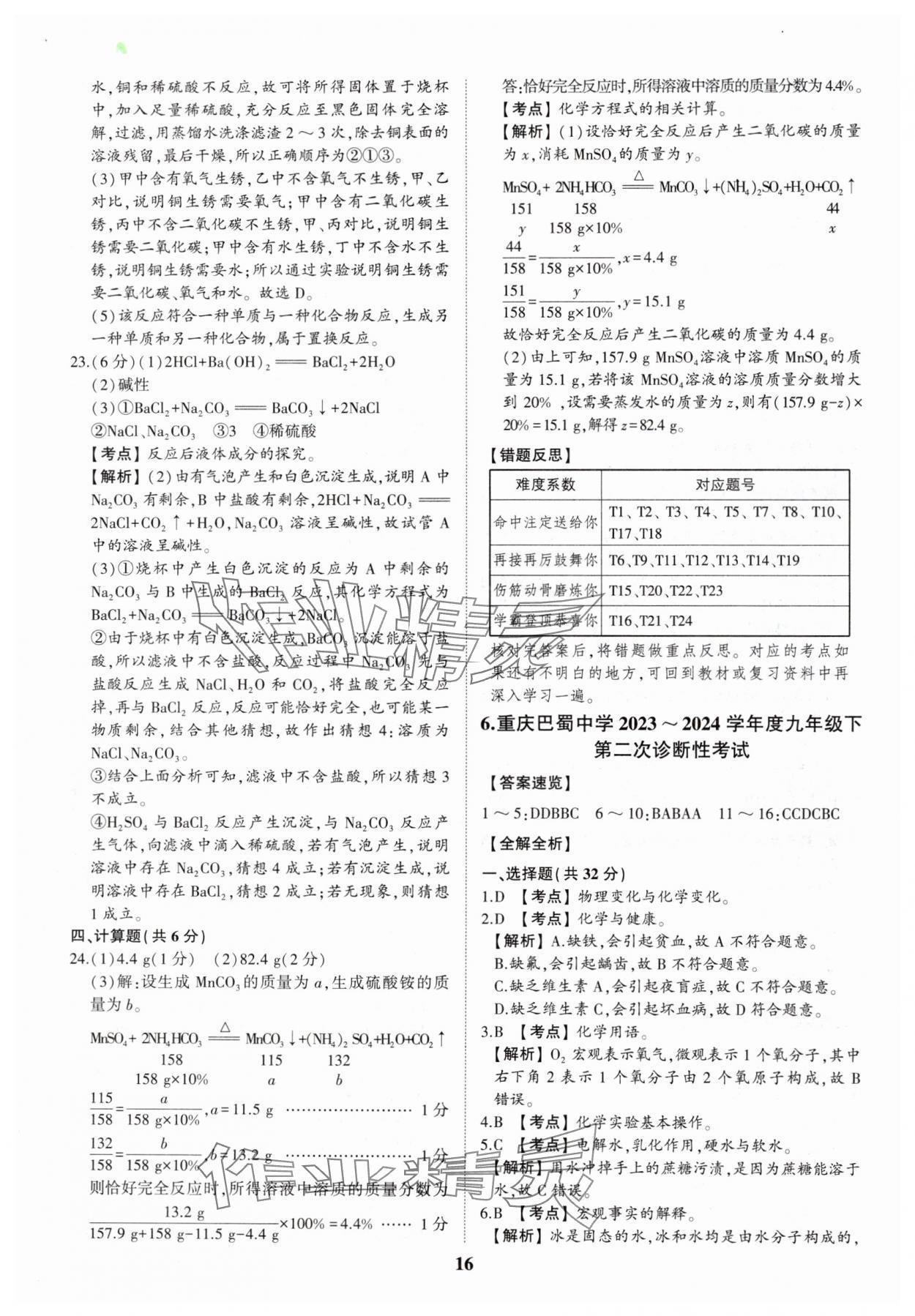 注:目前有些书本章节名称可能整理的还不是很完善,但都是按照顺序排列的,请同学们按照顺序仔细查找。练习册 2025年智乐星中考中考真题汇编化学重庆专版 答案主要是用来给同学们做完题方便对答案用的,请勿直接抄袭。