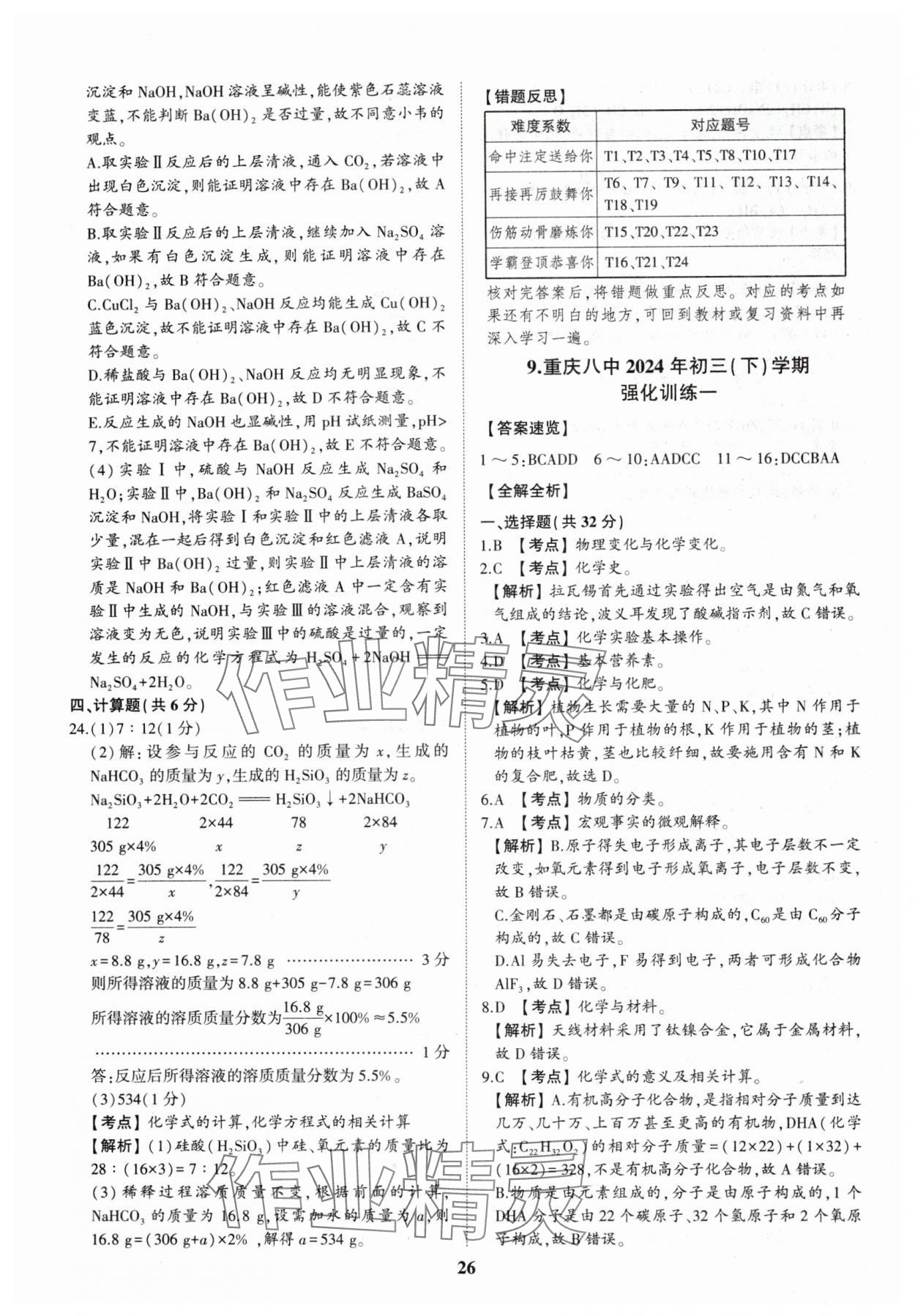 注:目前有些书本章节名称可能整理的还不是很完善,但都是按照顺序排列的,请同学们按照顺序仔细查找。练习册 2025年智乐星中考中考真题汇编化学重庆专版 答案主要是用来给同学们做完题方便对答案用的,请勿直接抄袭。