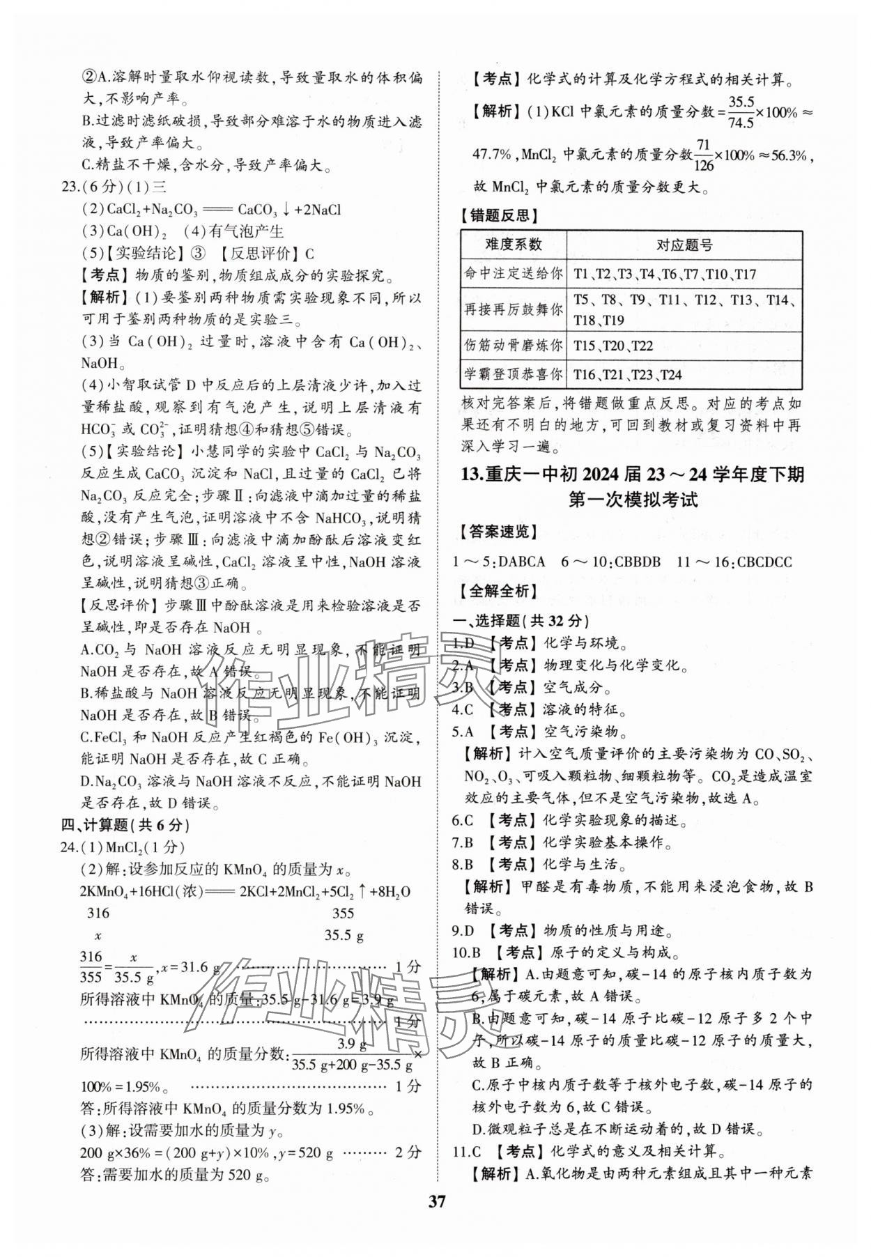 注:目前有些书本章节名称可能整理的还不是很完善,但都是按照顺序排列的,请同学们按照顺序仔细查找。练习册 2025年智乐星中考中考真题汇编化学重庆专版 答案主要是用来给同学们做完题方便对答案用的,请勿直接抄袭。
