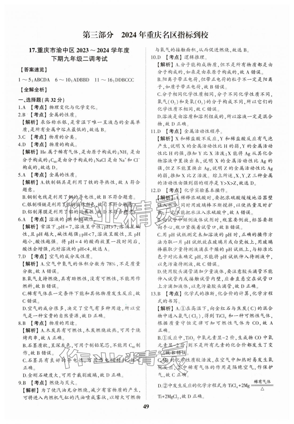 注:目前有些书本章节名称可能整理的还不是很完善,但都是按照顺序排列的,请同学们按照顺序仔细查找。练习册 2025年智乐星中考中考真题汇编化学重庆专版 答案主要是用来给同学们做完题方便对答案用的,请勿直接抄袭。