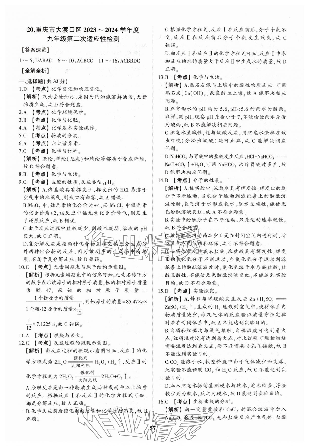 注:目前有些书本章节名称可能整理的还不是很完善,但都是按照顺序排列的,请同学们按照顺序仔细查找。练习册 2025年智乐星中考中考真题汇编化学重庆专版 答案主要是用来给同学们做完题方便对答案用的,请勿直接抄袭。