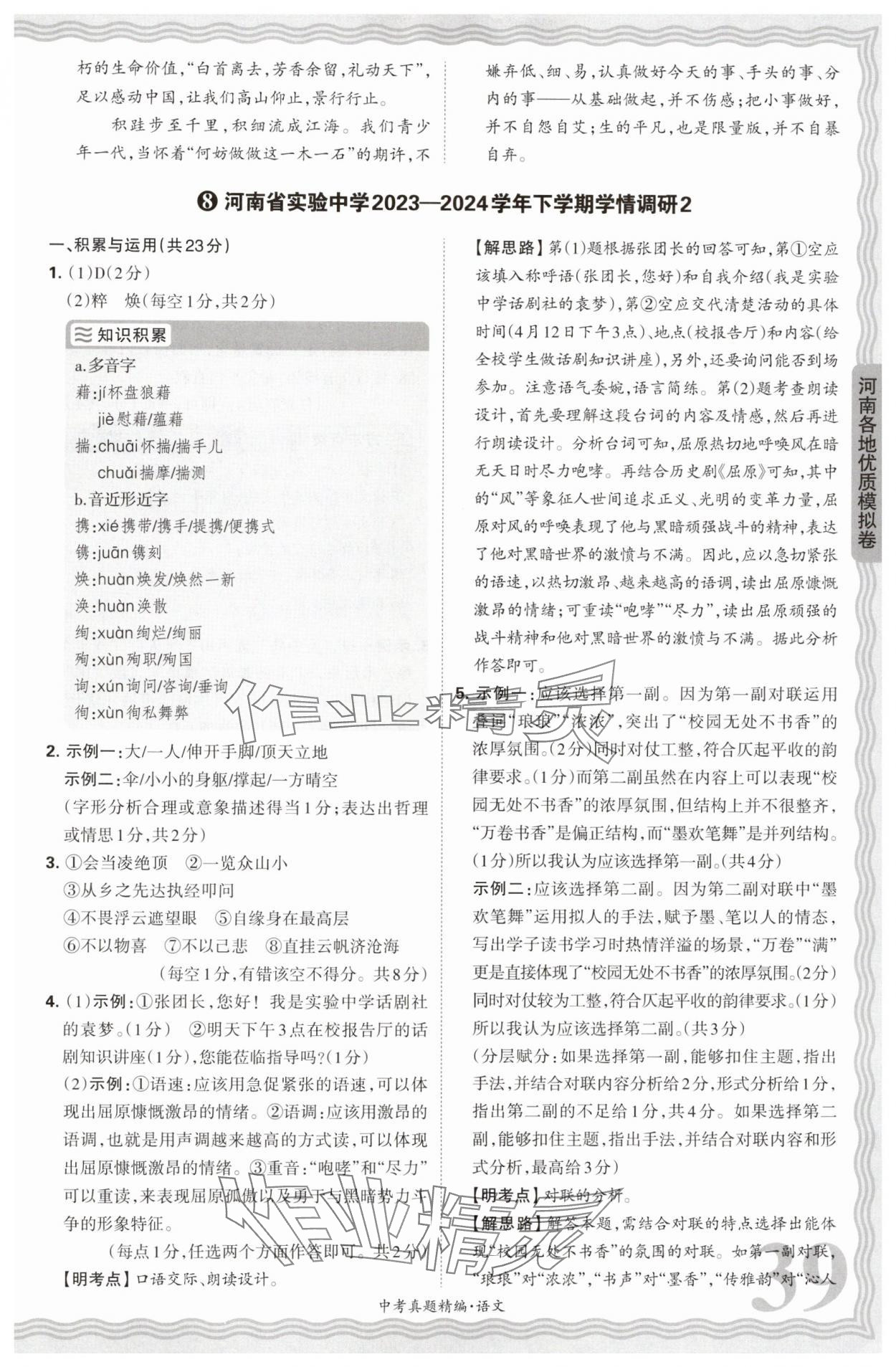 注:目前有些书本章节名称可能整理的还不是很完善,但都是按照顺序排列的,请同学们按照顺序仔细查找。练习册 2025年王朝霞中考真题精编语文河南中考 答案主要是用来给同学们做完题方便对答案用的,请勿直接抄袭。