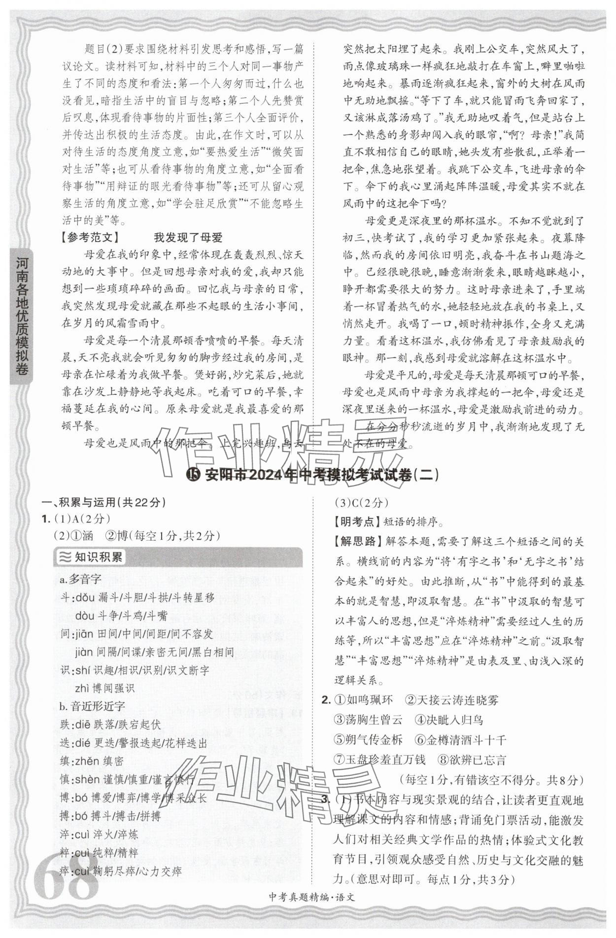 注:目前有些书本章节名称可能整理的还不是很完善,但都是按照顺序排列的,请同学们按照顺序仔细查找。练习册 2025年王朝霞中考真题精编语文河南中考 答案主要是用来给同学们做完题方便对答案用的,请勿直接抄袭。