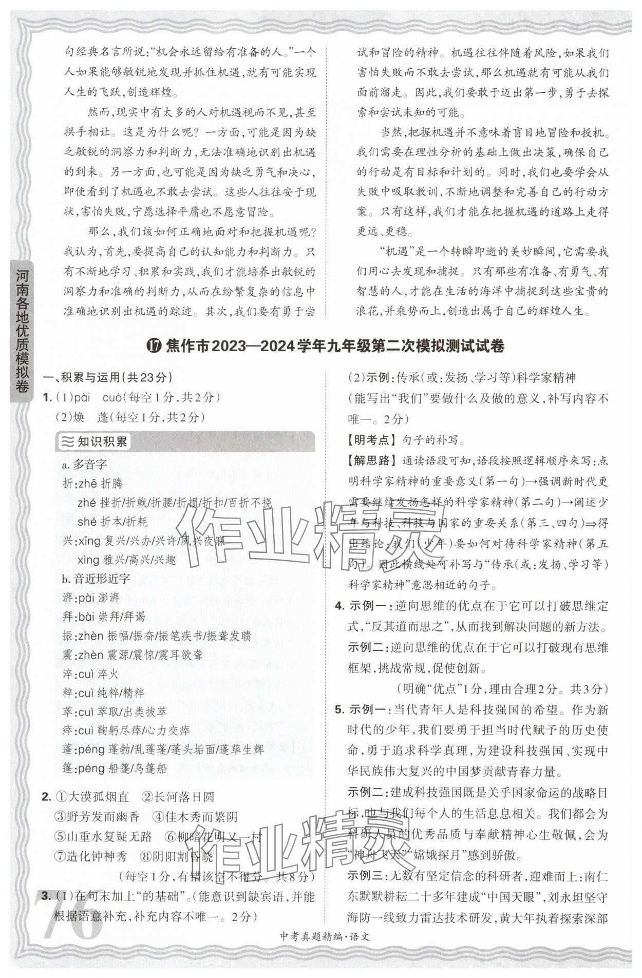 注:目前有些书本章节名称可能整理的还不是很完善,但都是按照顺序排列的,请同学们按照顺序仔细查找。练习册 2025年王朝霞中考真题精编语文河南中考 答案主要是用来给同学们做完题方便对答案用的,请勿直接抄袭。